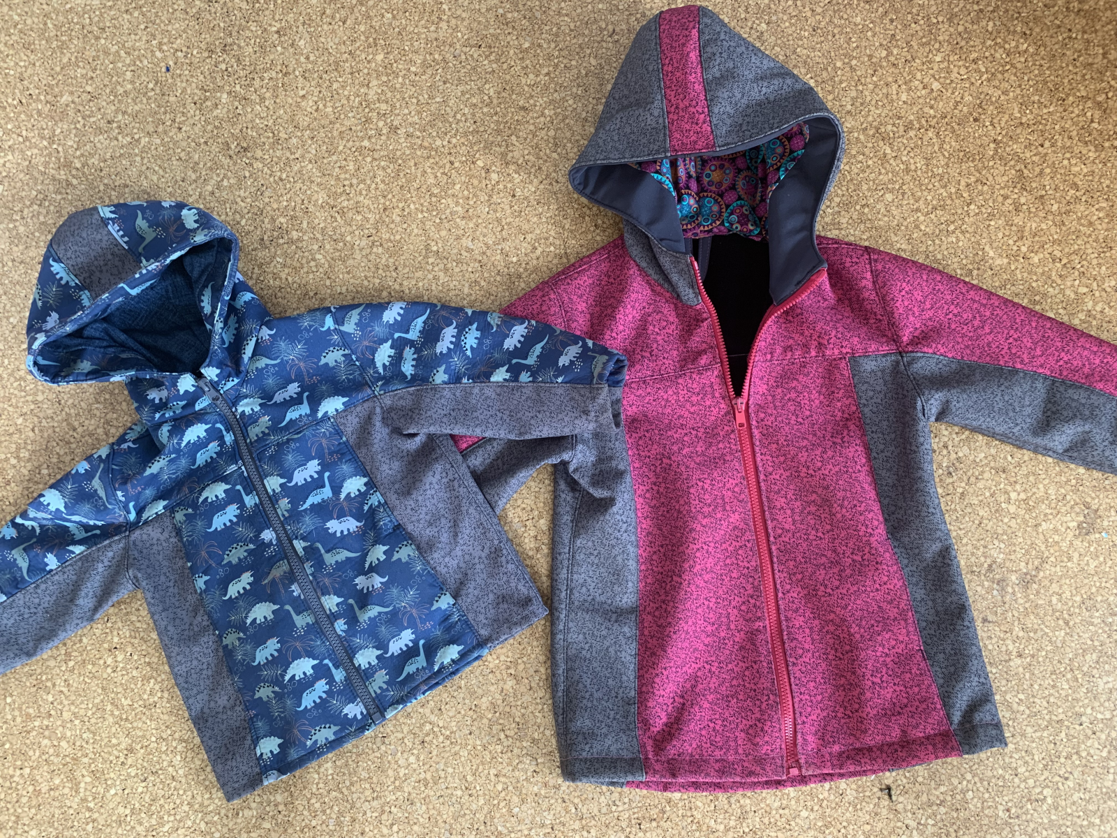 „Střih je skvěle propracovaný, dle videa se šilo výborně (jsem začátečník), jen jsem stále zapomínala na reflexní paspulky, takže jsem musela párkrát párat a na rukávech se jich vzdát :) Už ale vím, že příště musím na podsádky zvolit jiný materiál, než zimní softshell, bohužel mi stroj špatně provazoval, především u zipu. Bunda je zatím malému veliká, hlavně rukávy má dlouhé, ale na podzim bude akorát! Jediný problém je, že tatínek chce taky dračí bundu, tzn. dračí zbroj..“