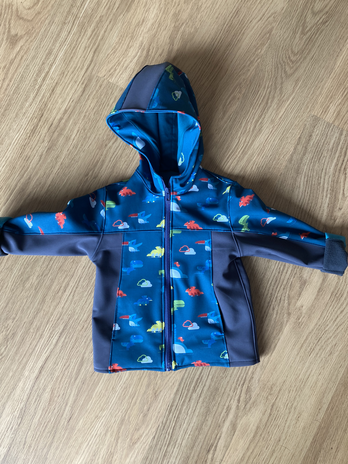 „První bunda pro mého malého rybáře je na světě. Mám ještě co zlepšovat, i tak z ní mám obrovskou radost. Podle videa se šilo parádně. Přidala jsem si ještě reflexní paspulku pro zvýšení bezpečnosti našeho pokladu.“