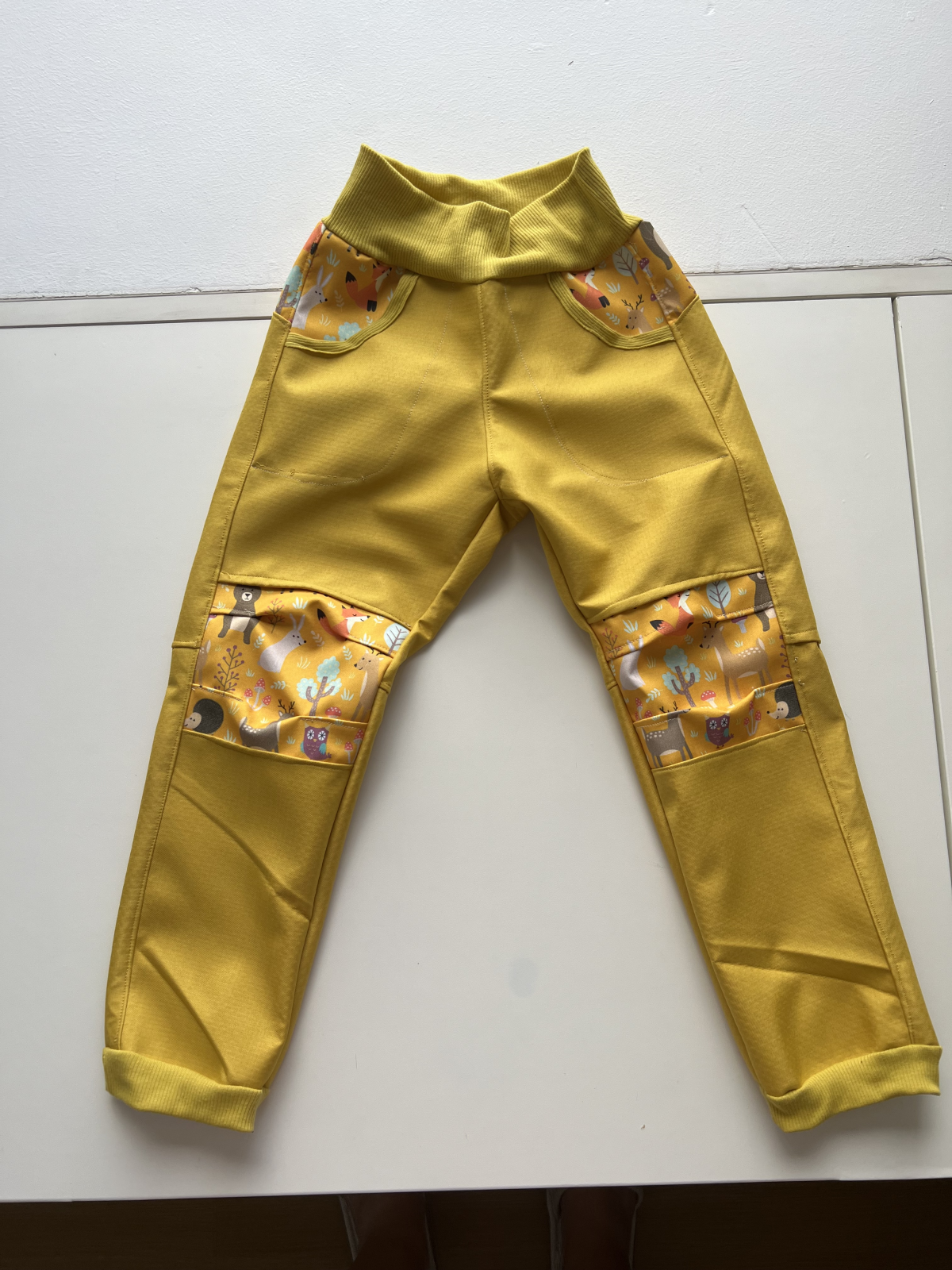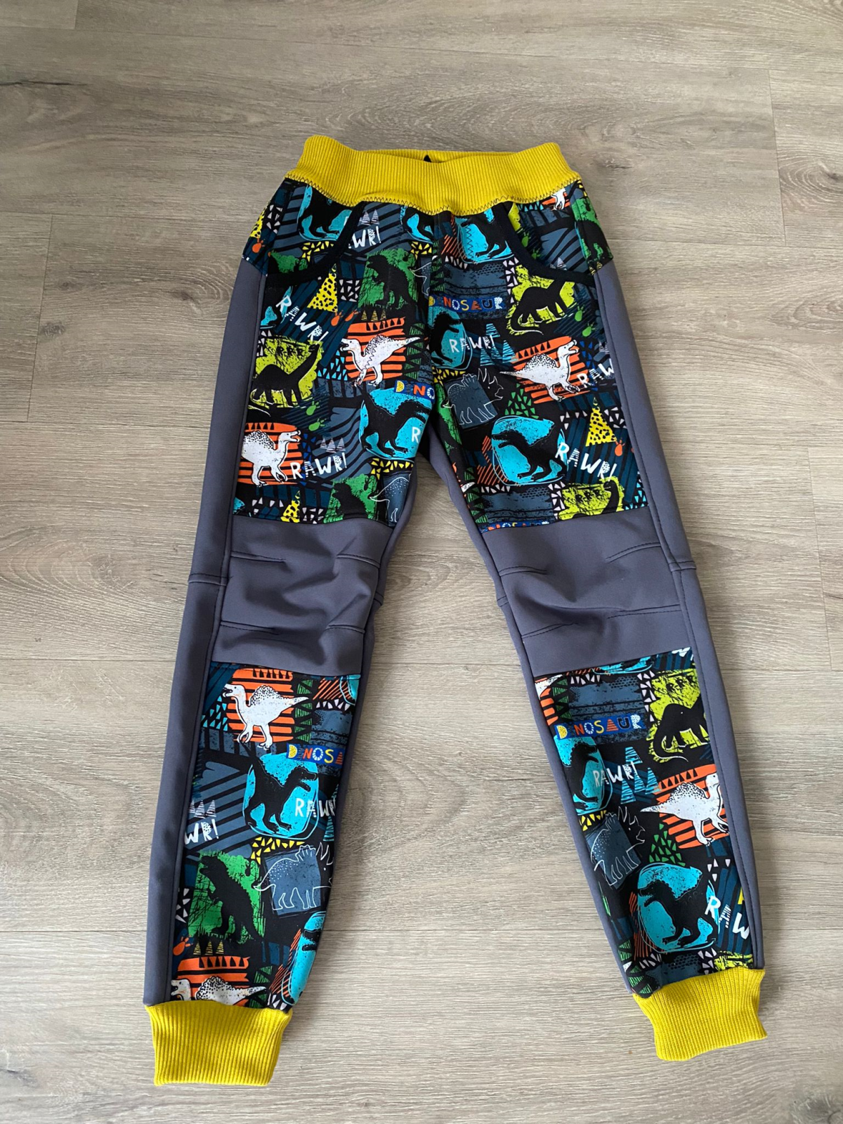 Prďácké kalhoty pro kluky i holky. Střih je konstruován primárně pro softshell, proto tento materiál jsou kalhoty ideálně široké.