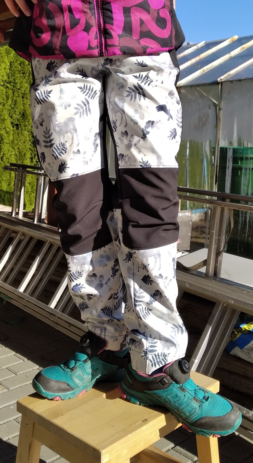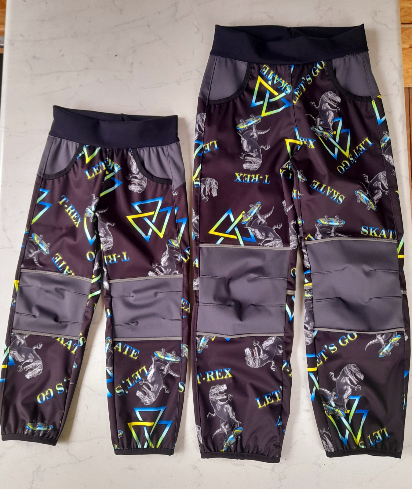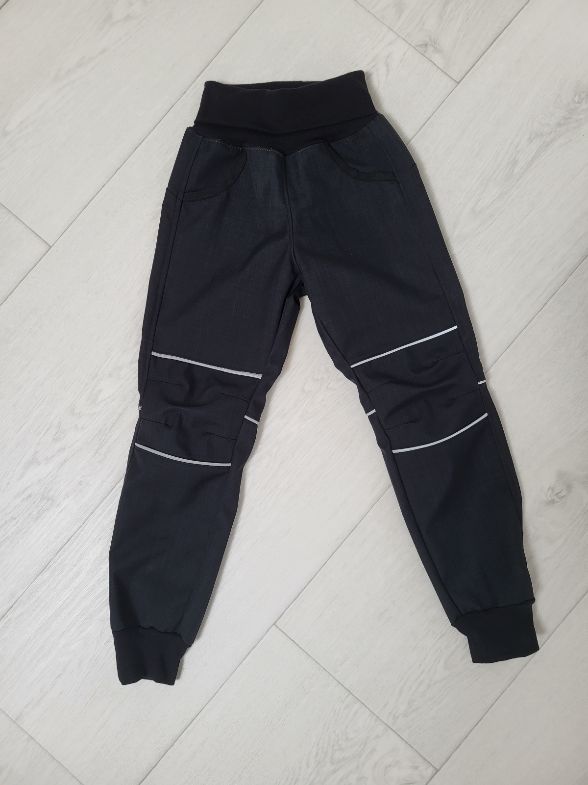 Prďácké kalhoty pro kluky i holky. Střih je konstruován primárně pro softshell, proto tento materiál jsou kalhoty ideálně široké.