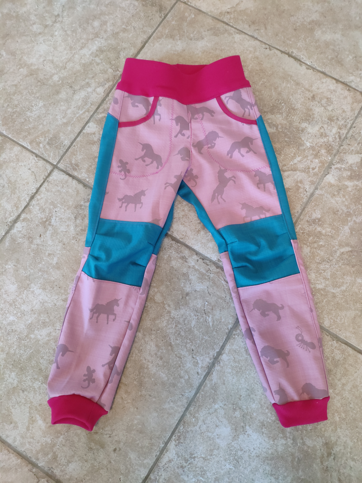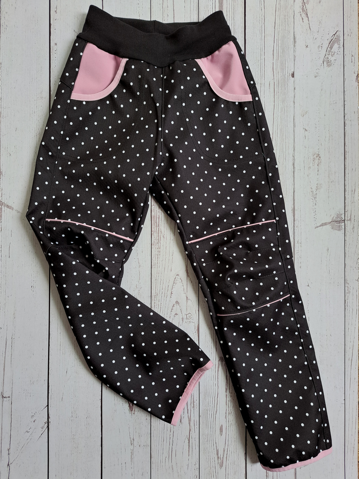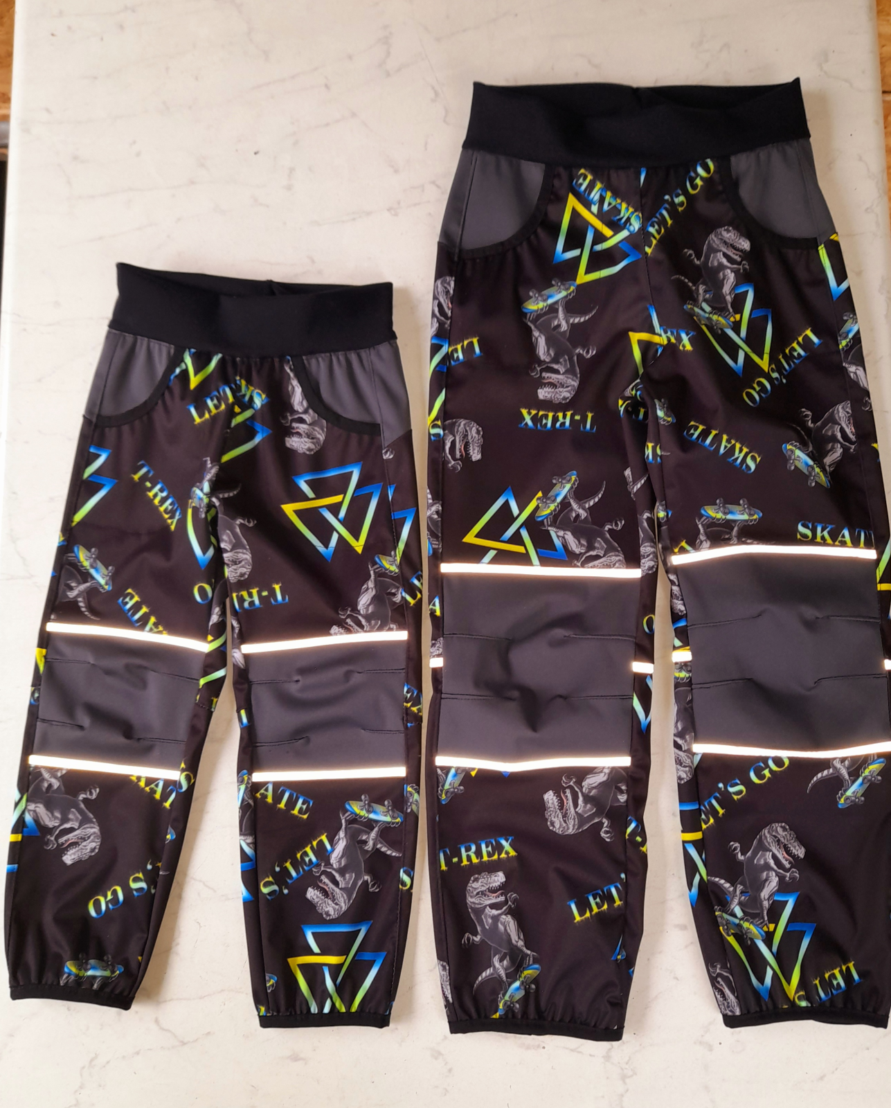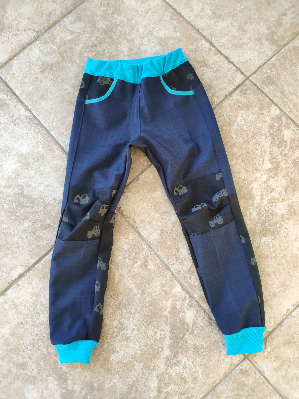 Prďácké kalhoty pro kluky i holky. Střih je konstruován primárně pro softshell, proto tento materiál jsou kalhoty ideálně široké.
