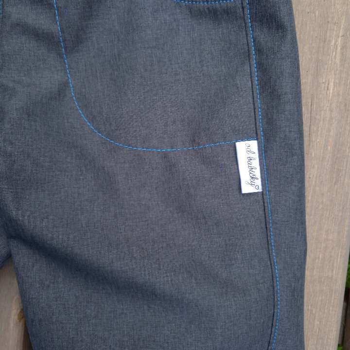 „Střih sedí úžasně. Upravovala jsem velikost kapes, potřebujeme velké kapsy na poklady 🙂 Šila jsem odvozenou větší velikost, přidala na délku a vznikly z toho rostoucí kalhoty. Vše je šité francouzským stehem.“