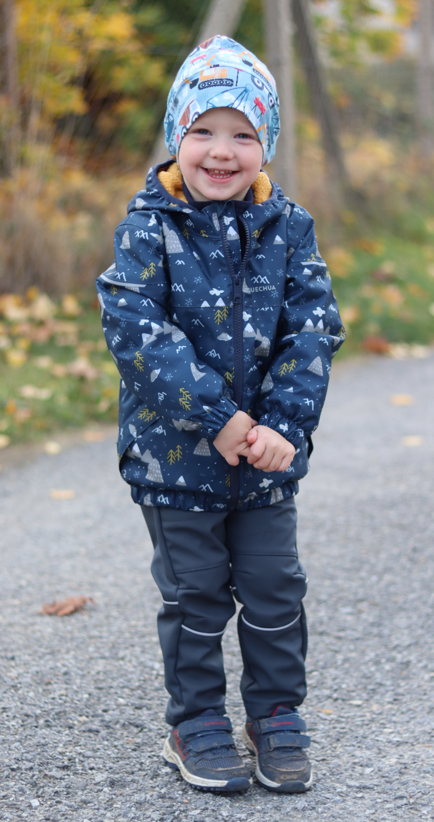 „Střih velmi hezky sedí - kalhoty, byť jsou sportovního střihu, vypadají velmi elegantně. Syn je má do lesní školky, ale může si je vzít klidně i do města (nepůsobí objemně). Ve školce se osvědčily - jsou velmi pohodlné díky tvarování kolen a členění, neomezují v pohybu. Super je možnost přidání reflexní paspulky do členících švů nebo různé kombinování barev a vzorů. Největší výhodou je možnost úprav kalhot - 1. kalhoty jsem šila širší o 5 cm kvůli podvlékání, s náplety v nohavicích. Tyto jsou bez dodatečných úprav, okraje kalhot jsou pouze zahnuty. Starší dcera má ode mě slíbené také tyto kalhoty.“