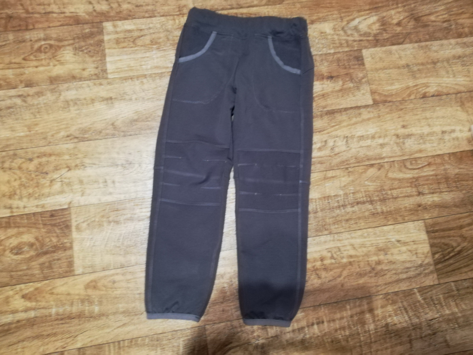 Kalhoty mají kapsy a dolní kraj je zakončen zahnutím, lze zde použít náplet stejně jako v pase nebo lemovací gumičku.