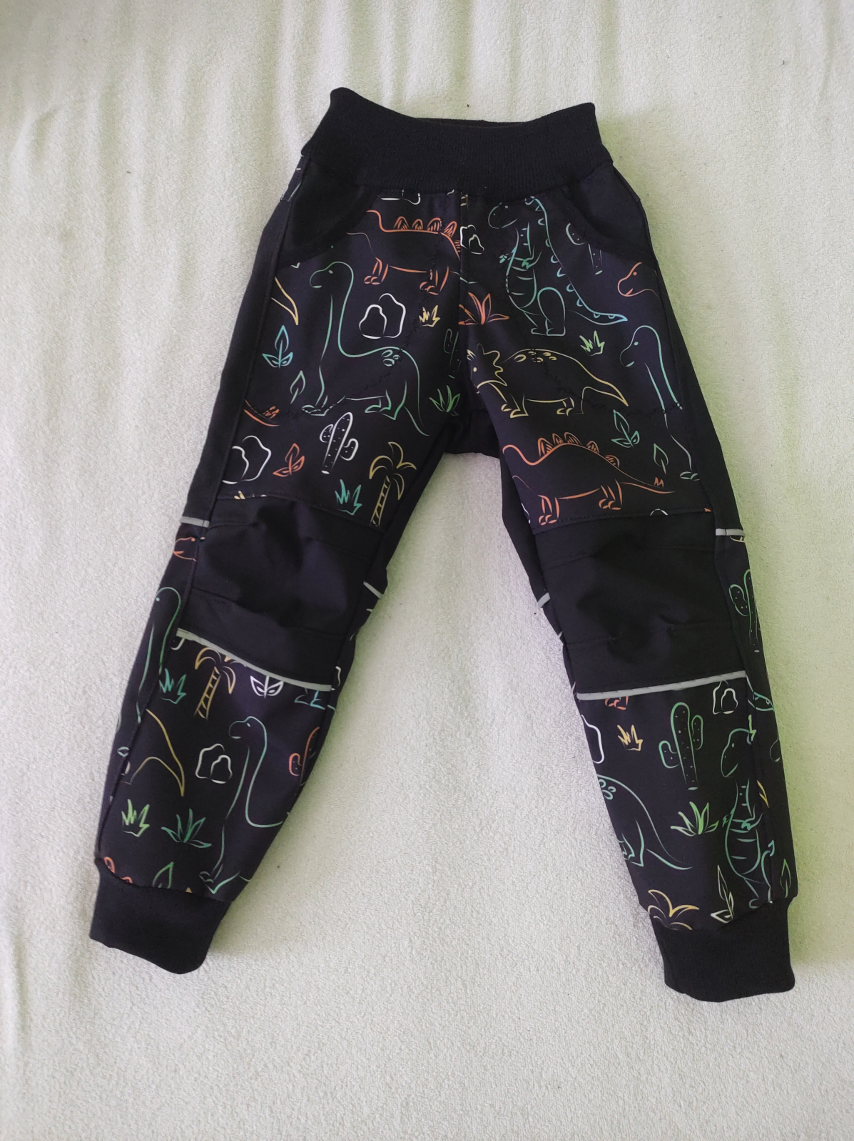 velikost: 98, materiál: Jarní softshell (Mimi látky), náplet v pase hladký patent, náplet na nohavicích polyester