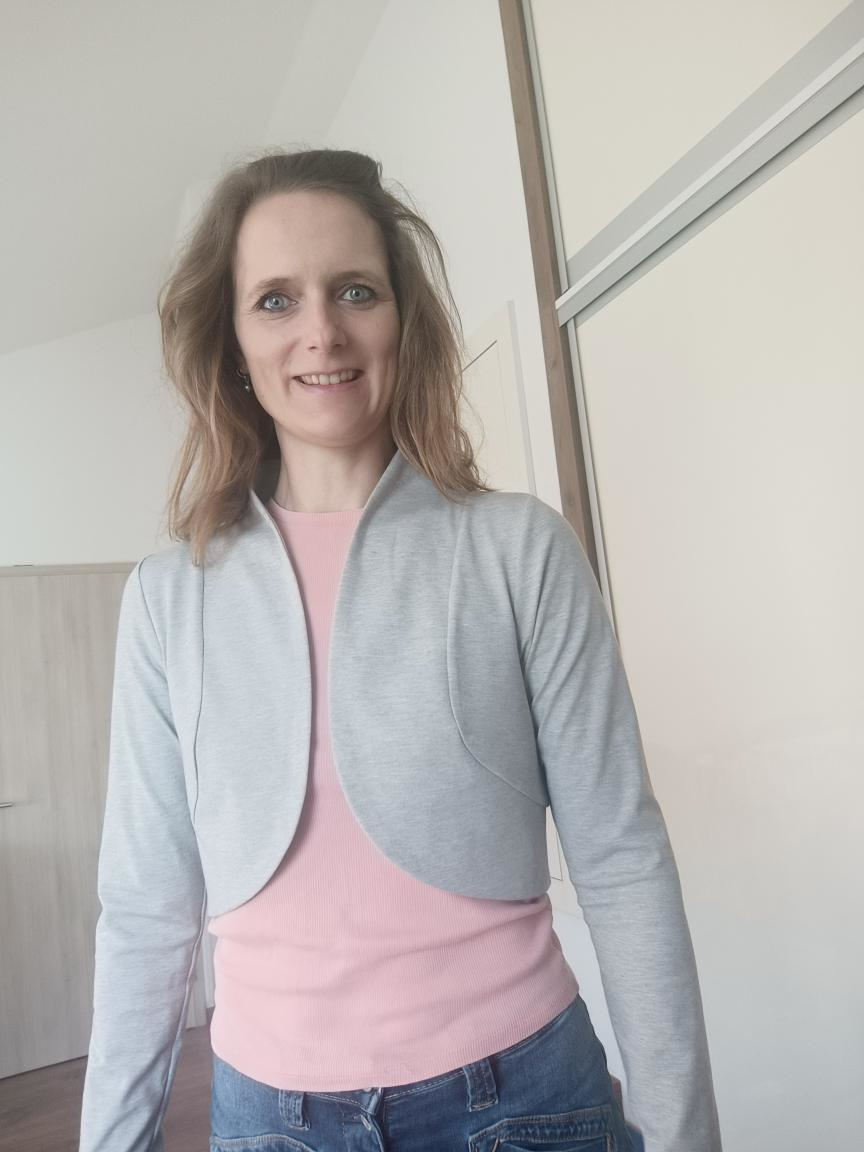 „Návod super, nic mi nechybělo. To žehlení vlizelinoveho obvodu v oblouku to je teda žůžo 🫣😄 Přes prsa mám 90, pod prsy 72, bolerko krásně sedí. Jen se těšim až půjdou konfigurace. Rukáv jsem si troufla prodlouzit jen o 1,5 cm, ale kdybych ho chtěla dlouhý musela bych přidat tak 10. Takhle je tak 3/4. Pokud by konfigurace zvládla i prodloužení celkově, že by z toho vzniklo i sáčko, to by byla bomba.“