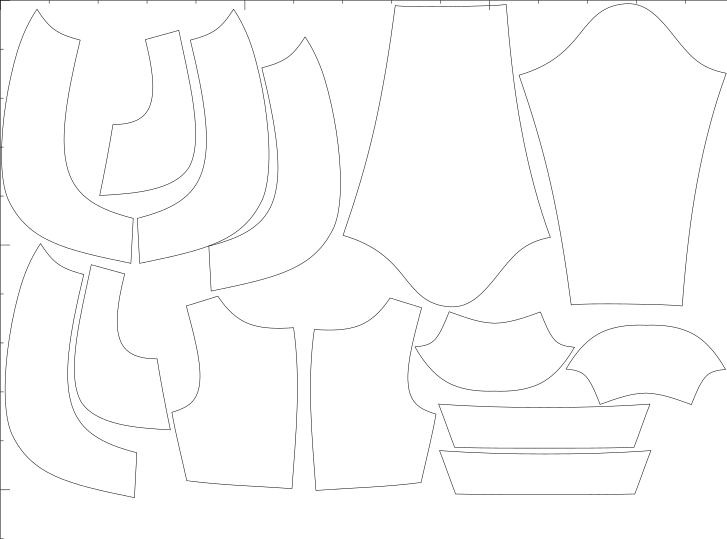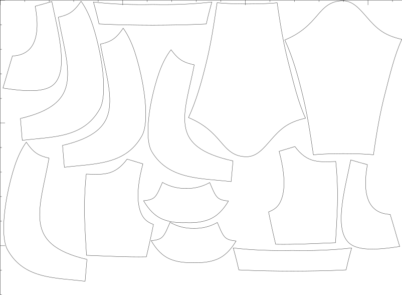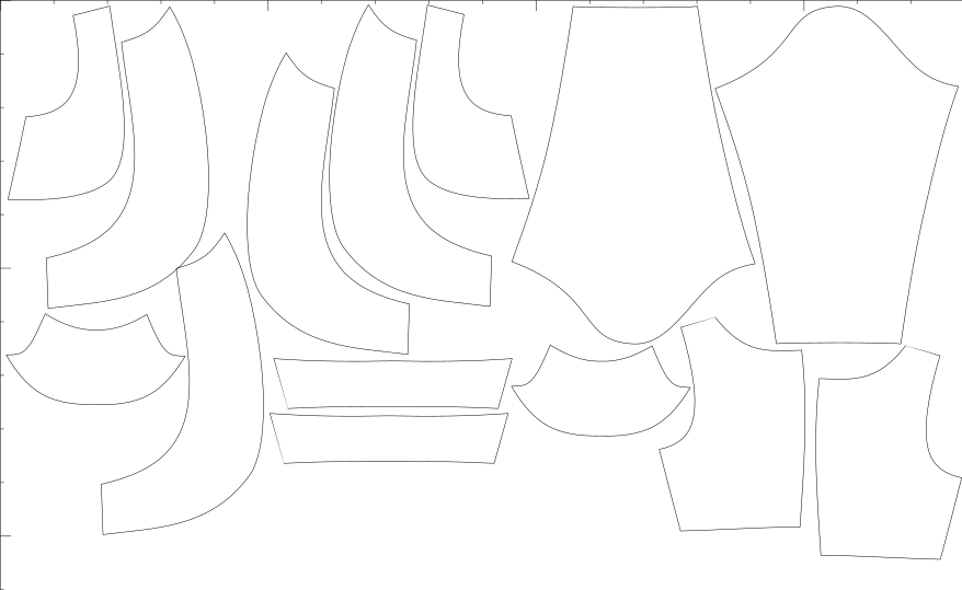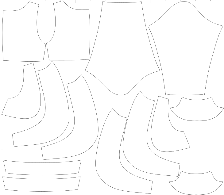 V ceně jsou konfekční velikosti i libovolné množství konfigurací na míru, export pro A4, A0, střih s přídavky i bez, export pro projekt.