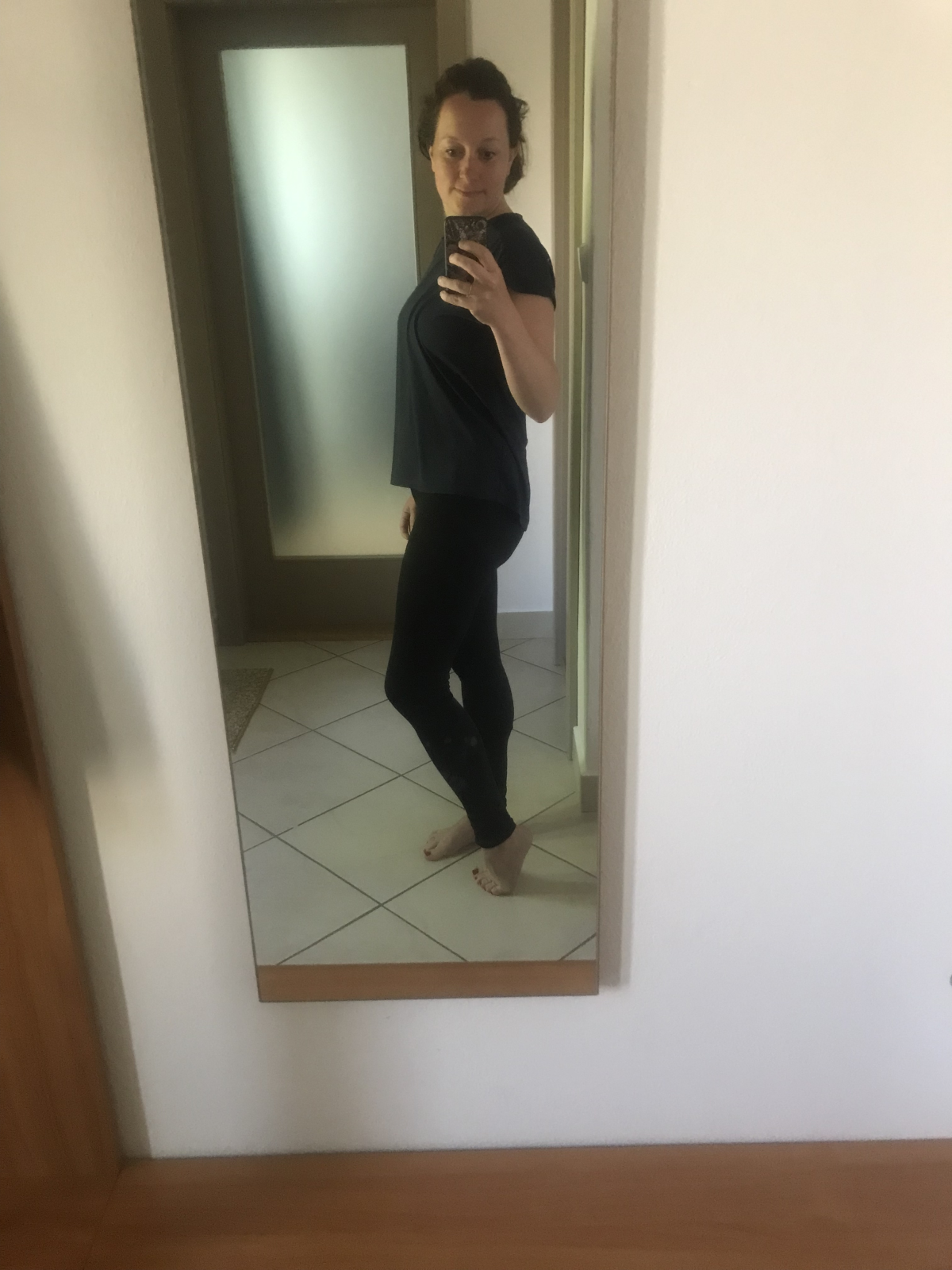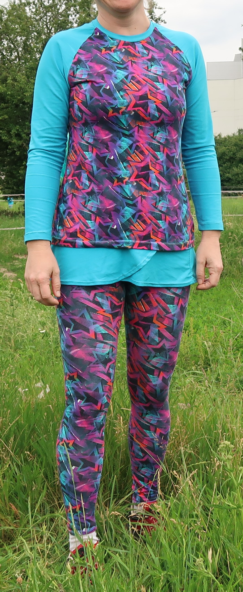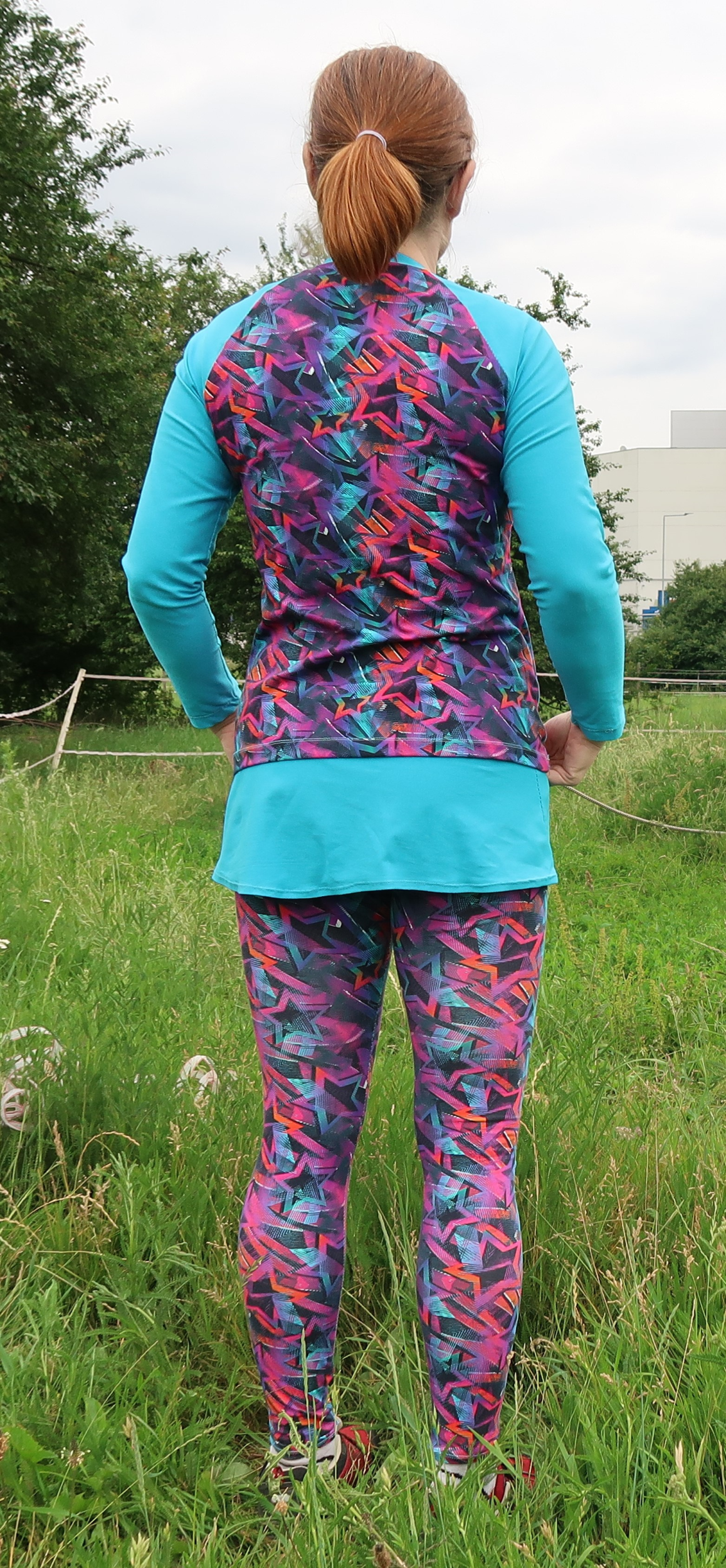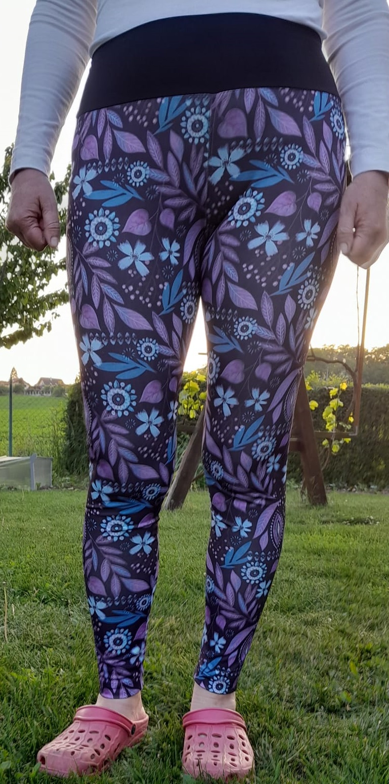 Tyto první legíny byly zkušební, šité z bavlněného úpletu s elastanem z Látek Mráz. vel. Šila jsem velikost 41 - konfigurovanou