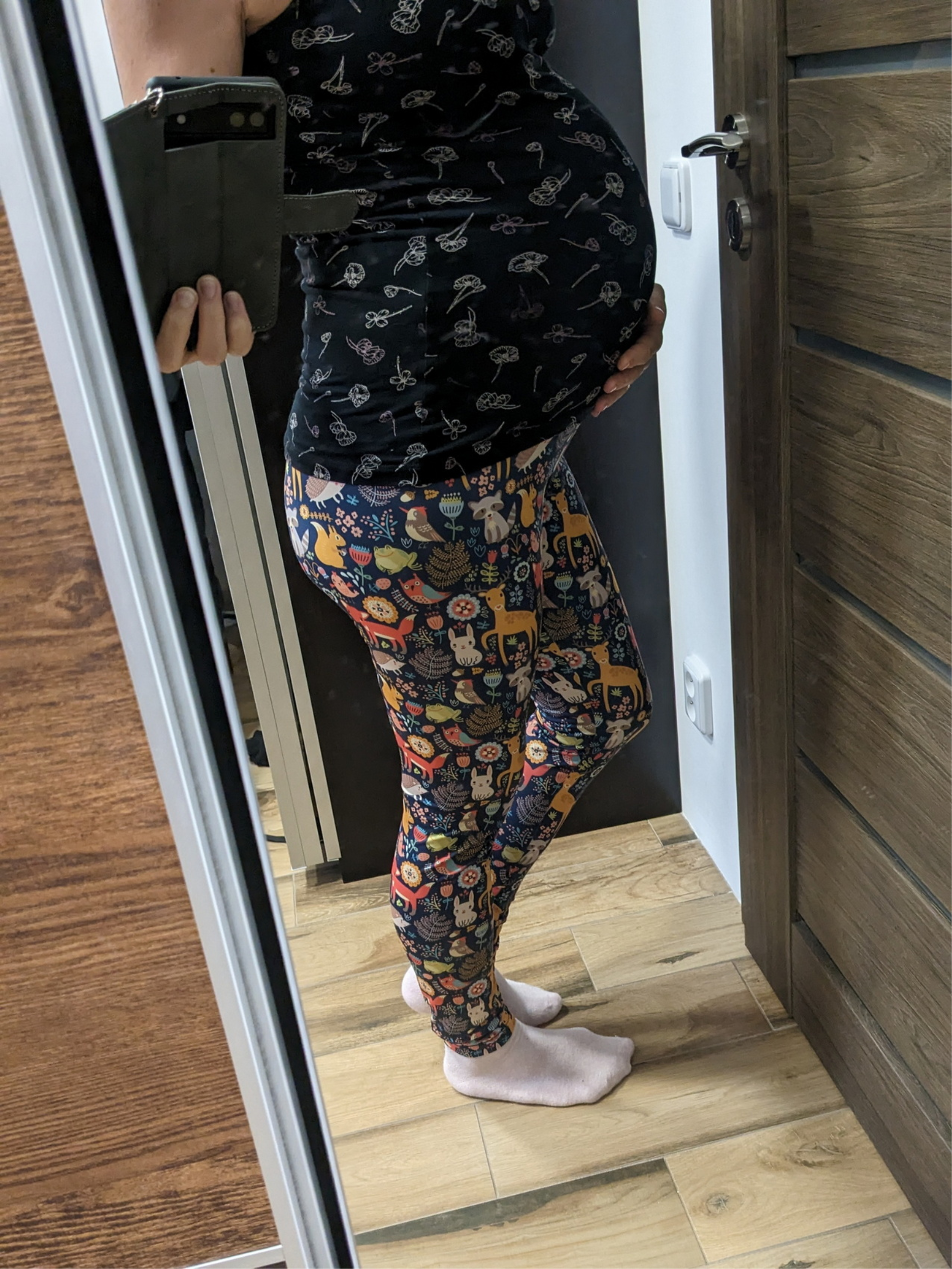 „Legíny sedí perfektně, přizpůsobila jsem si pas pro těhotenské bříško, v počátcích těhotenství byly příjemné a nikde mě netlačily, zároveň v průběhu dělaly příjemnou oporu pro rostoucí bříško (vejdu se i teď v posledním měsíci :-)). Po porodu spoléhám na lehce stahovací efekt :-))“