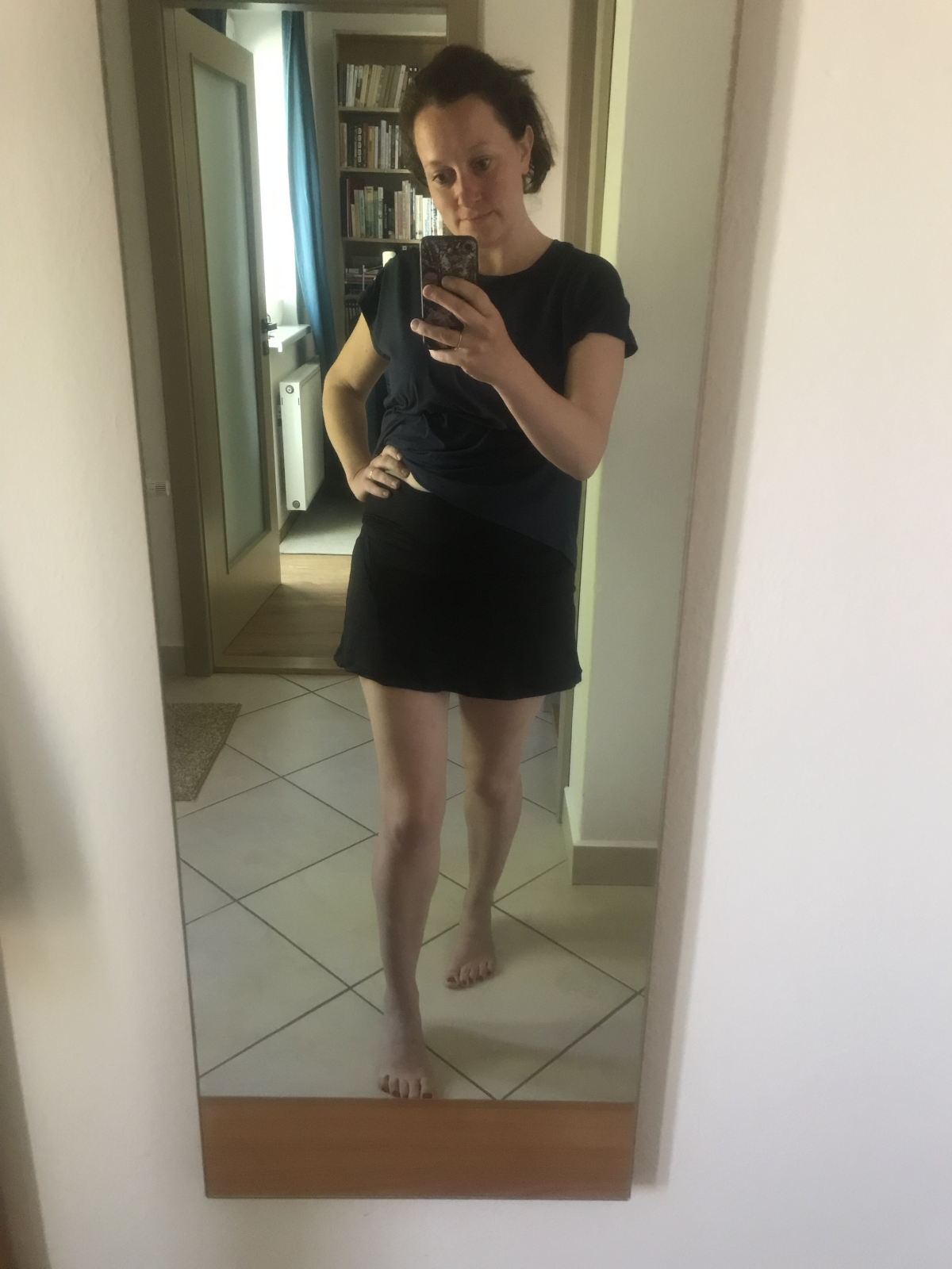 U bavlněného úpletu byla sukýnka moc upnutá a tak jsme střih sukýnky přes boky trochu povolili.