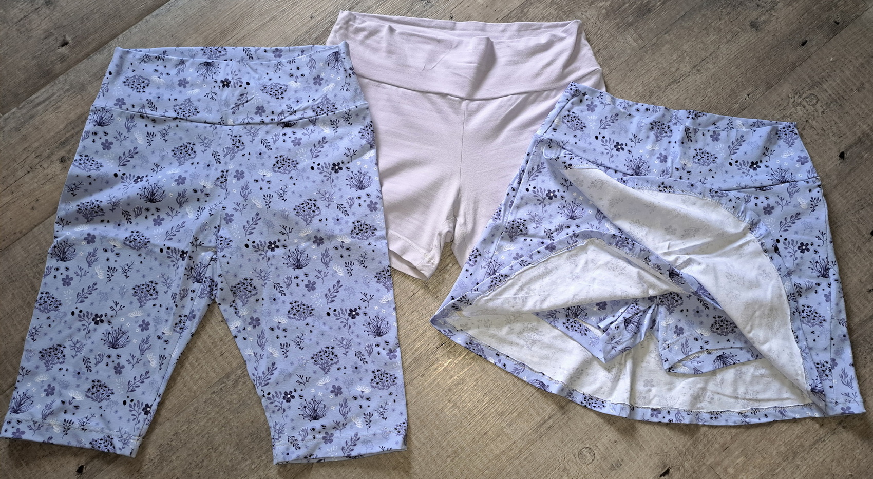 Návod je pro sukýnku s kraťasy a na samotné legíny.