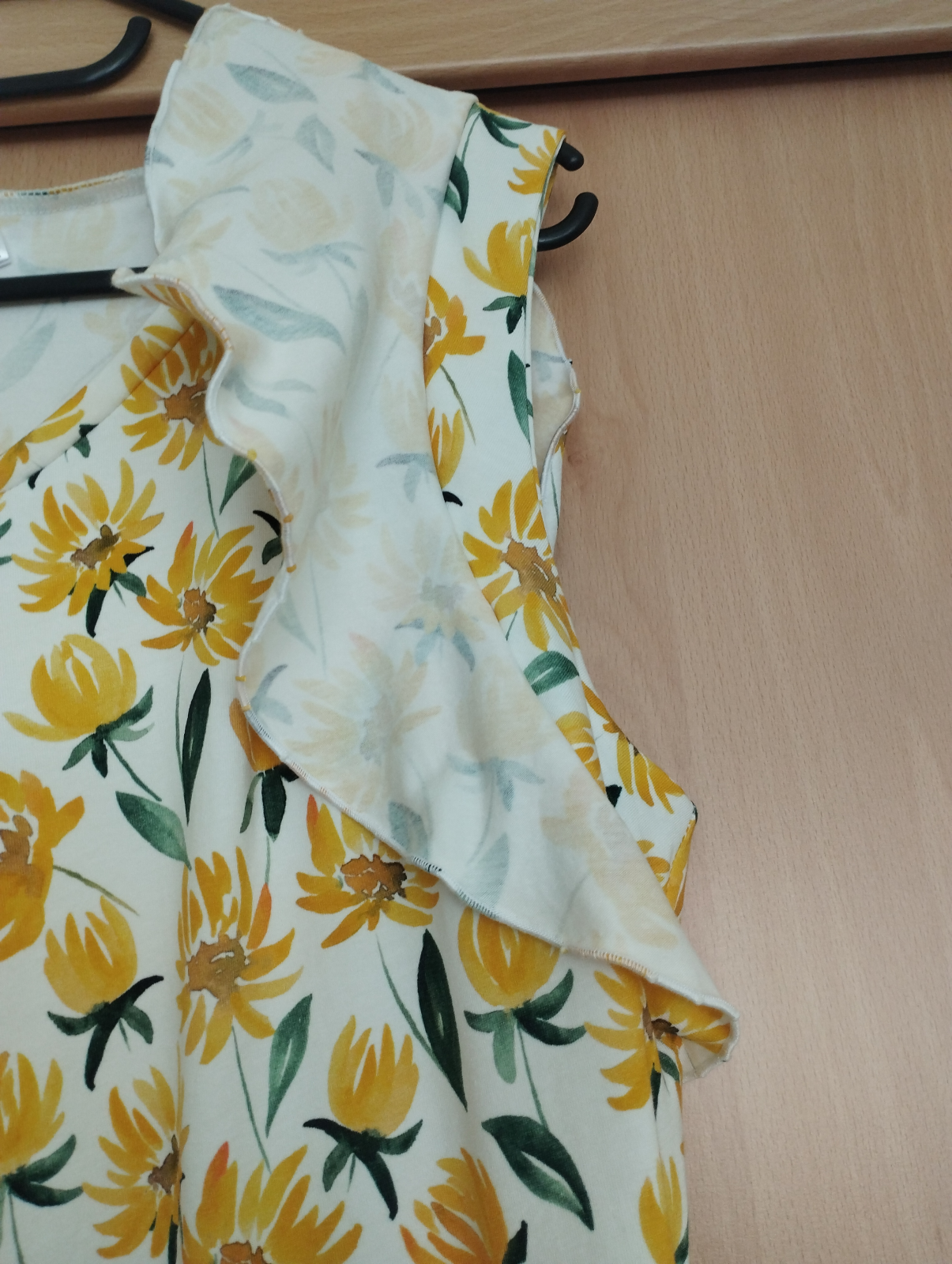 Pokud budete volit potištěnou látku mějte na paměti že může být vidět i druhá strana (rub) při pohledu z boku. především u volánu na rameni.