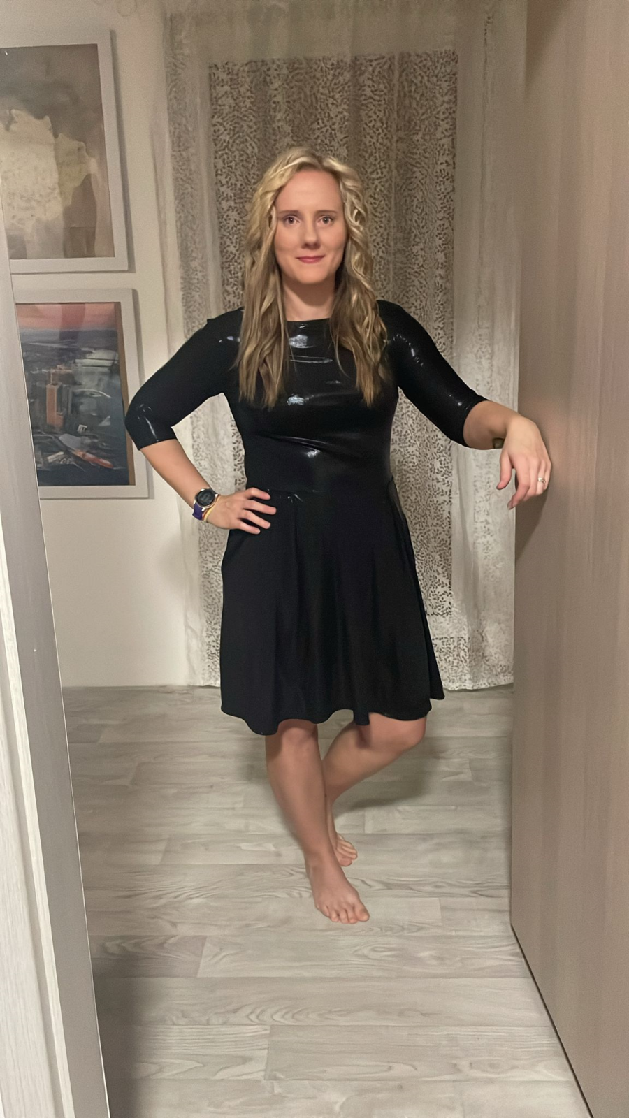 „Moje páté Pavlíny v šatníku. Pokaždé trochu jiné, tentokrát s kolovou sukní a zvětšeným výstřihem na zádech. Šijí se skoro samy a velikost sedí přesně.“