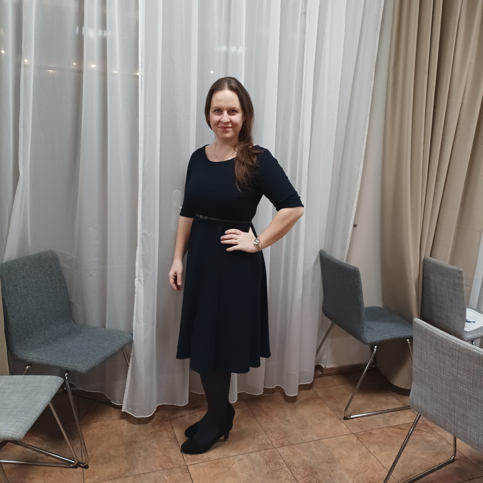 „Moc děkuji za střih. Jsou to mé první ušité šaty. Šaty jsem hned vyvezla na podzimní výlet do italského Alberobello. Využila jsem videonávod, který je velmi užitečný. Určitě plánuji ušít si Pavlíny v kombinaci třeba s půlkolovou sukní bez skladů.“