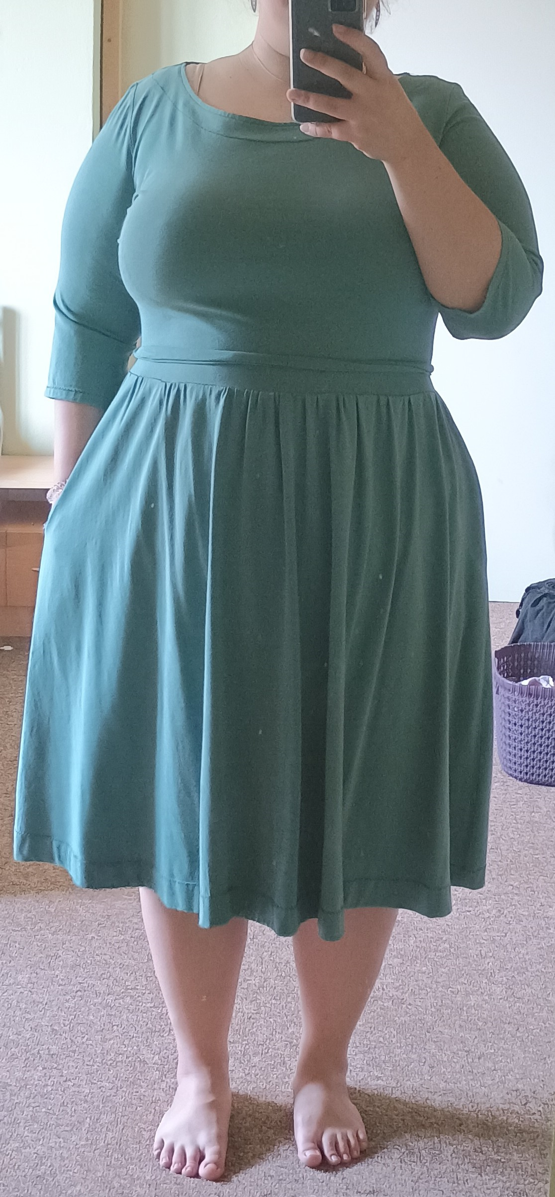 AD: "Šaty se šily parádně, vše bez problémů, jen jsem použila kapsy ze střihu Leontýna, více mi vyhovují tvarem a hloubkou. " *