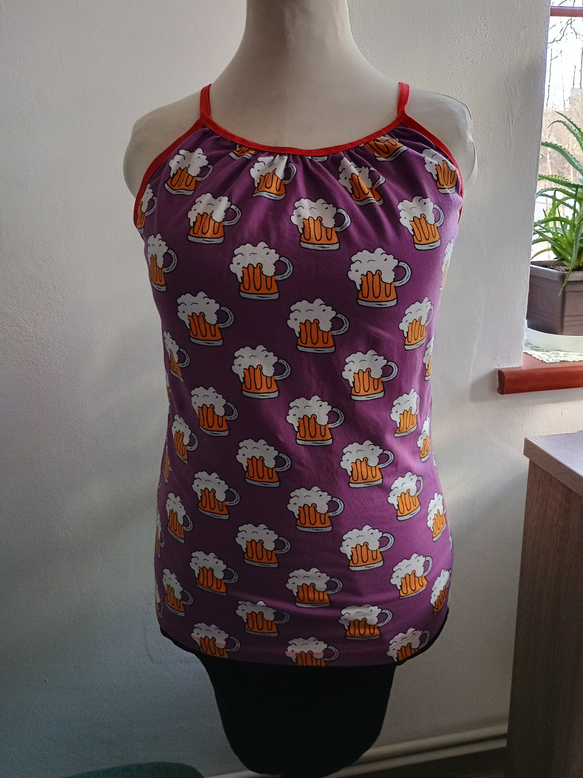 „Střih a návod opět perfektní. Zamotala jsem se do přišití ramínek, aby nebyly vidět atřižené konce pruženky (kdybych na návod koukala na počítači, ulehčilo by mi to). Díky řasení opravdu pěkně sedí. Jelikož tílka v zimě ráda nosím jako spodní vrstvu, jsem nadšená z délky (záda budou pěkně v teple). Těším se na další.“