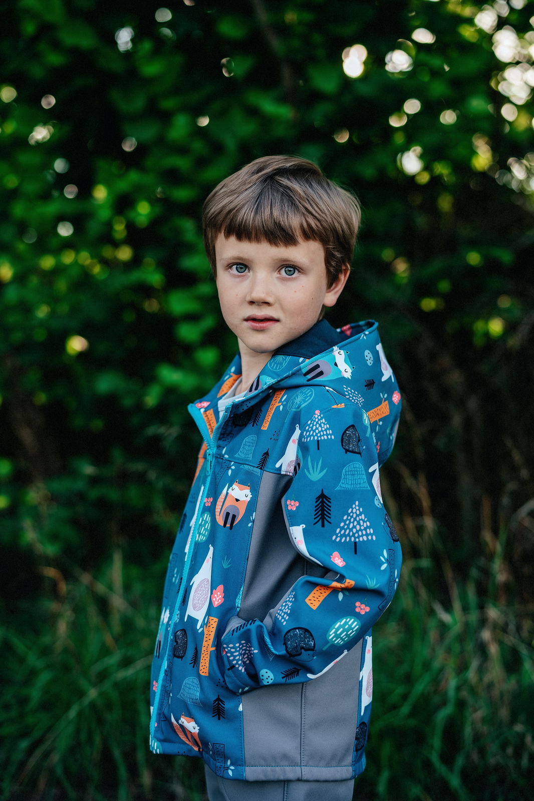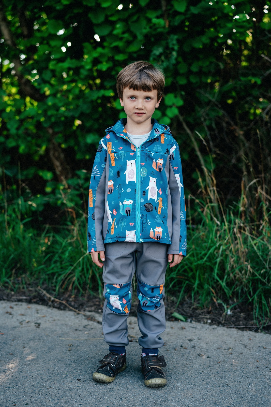 Střih na softshellovou bundu Kryštof je na úplně jiné bázi: umožňuje si předem nastavit velikost tak, aby bunda dítěti dokonale padla. Pravdou je, že "tabulkový" není skoro nikdo a každý má své představy o výsledné bundě. Někdo preferuje kratší rukávy, někdo zase delší zadní díl. Některé dítě má velkou hlavu, jiné zase menší a běžná kapuce mu padá do očí. Díky našemu střihu si navolíte přesně to, co potřebujete.