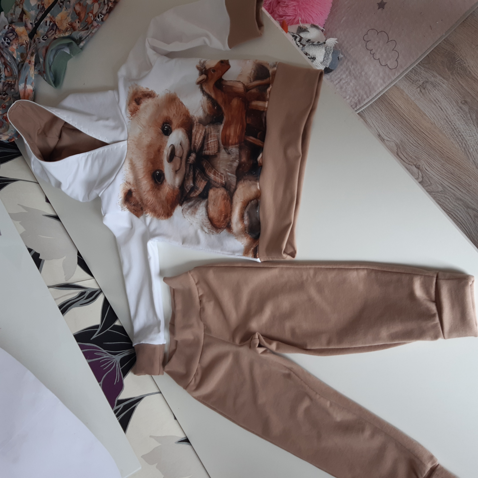 velikost: 92, materiál: Počesaná teplákovina z místního obchůdku.