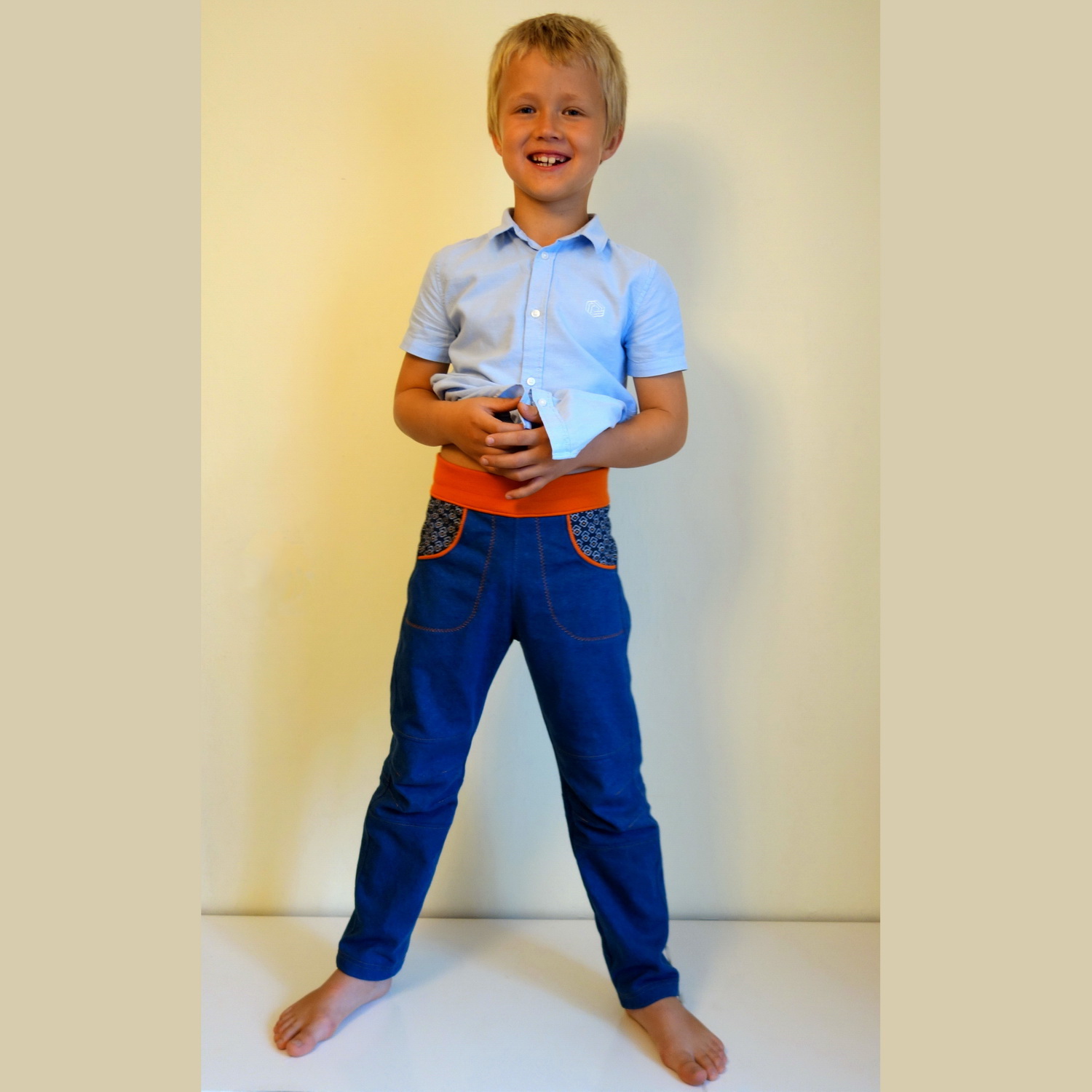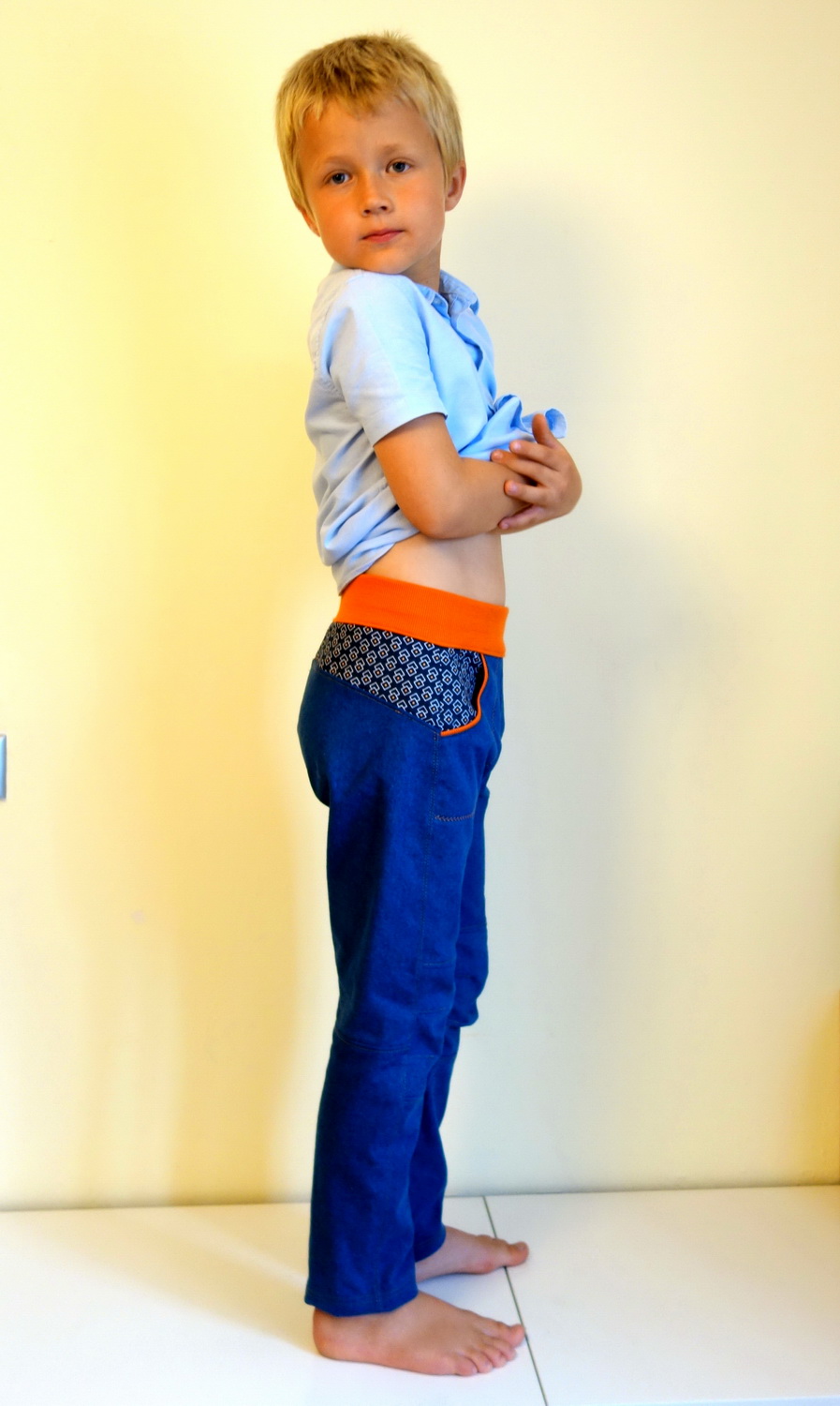 Obrovskou výhodou střihu je nastavení na míru. Určíte si přesnou délku i šířku kalhot, dokonce i výšku sedu v předním a zvlášť zadním díle. Střih je tedy ideální i pro nekonfekční dítě, které třeba na šířku potřebuje velikost 140 ale na délku 122, nebo naopak.