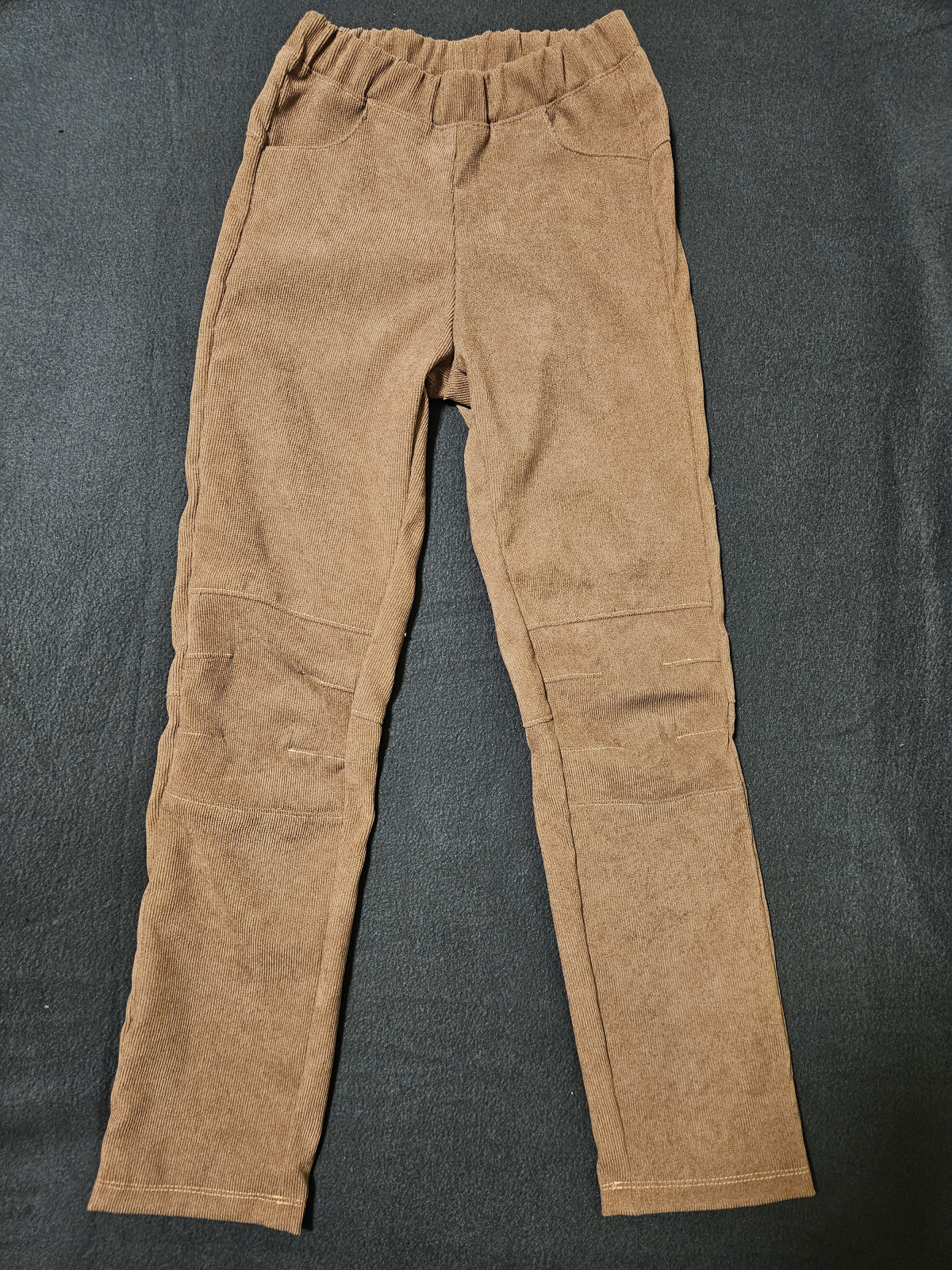 Kalhoty mají kapsy a dolní kraj je zakončen zahnutím, lze zde použít náplet stejně jako v pase nebo lemovací gumičku.