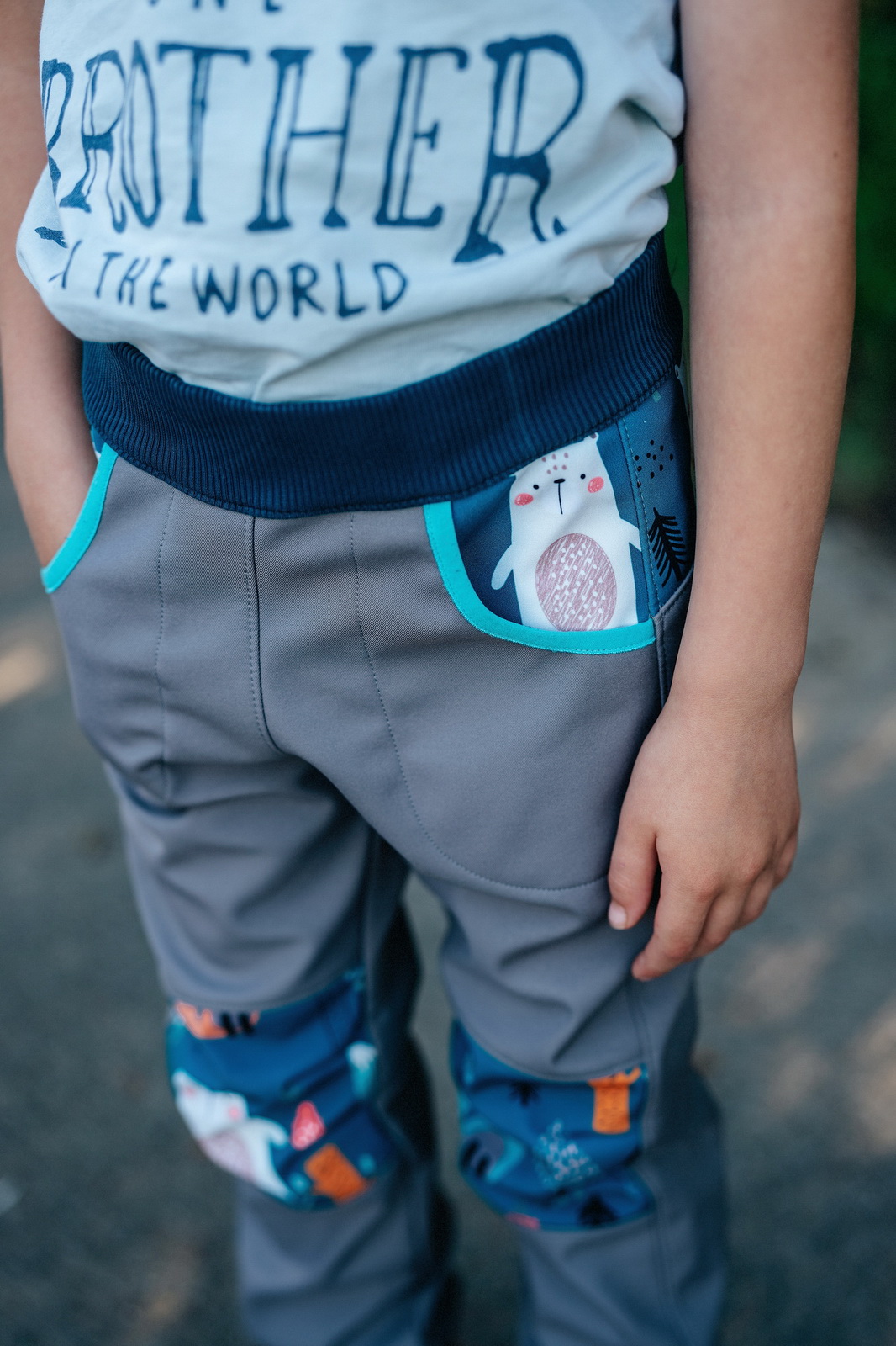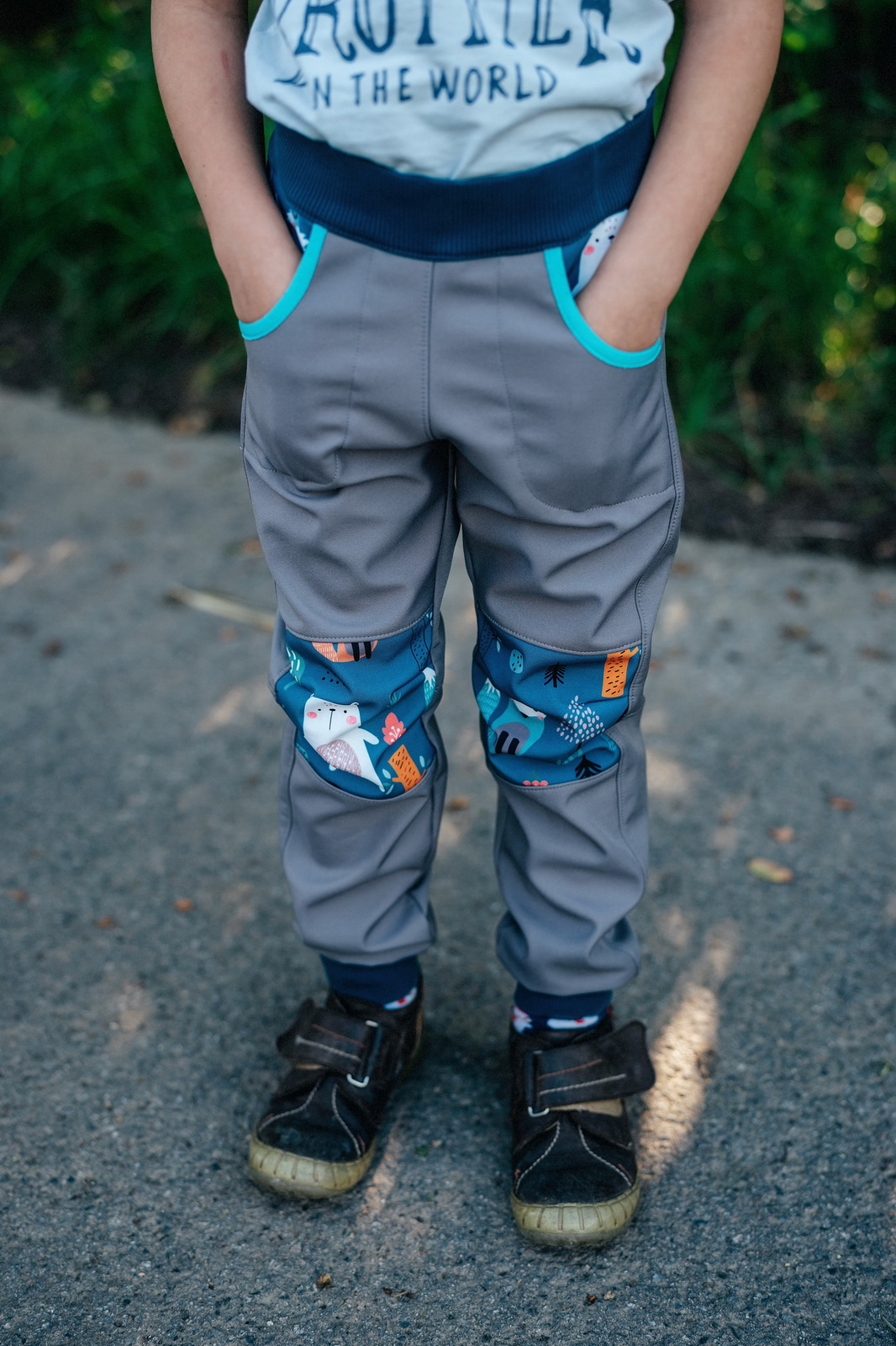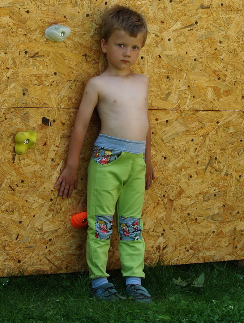Prďácké kalhoty pro kluky i holky. Střih je konstruován primárně pro softshell, proto tento materiál jsou kalhoty ideálně široké.