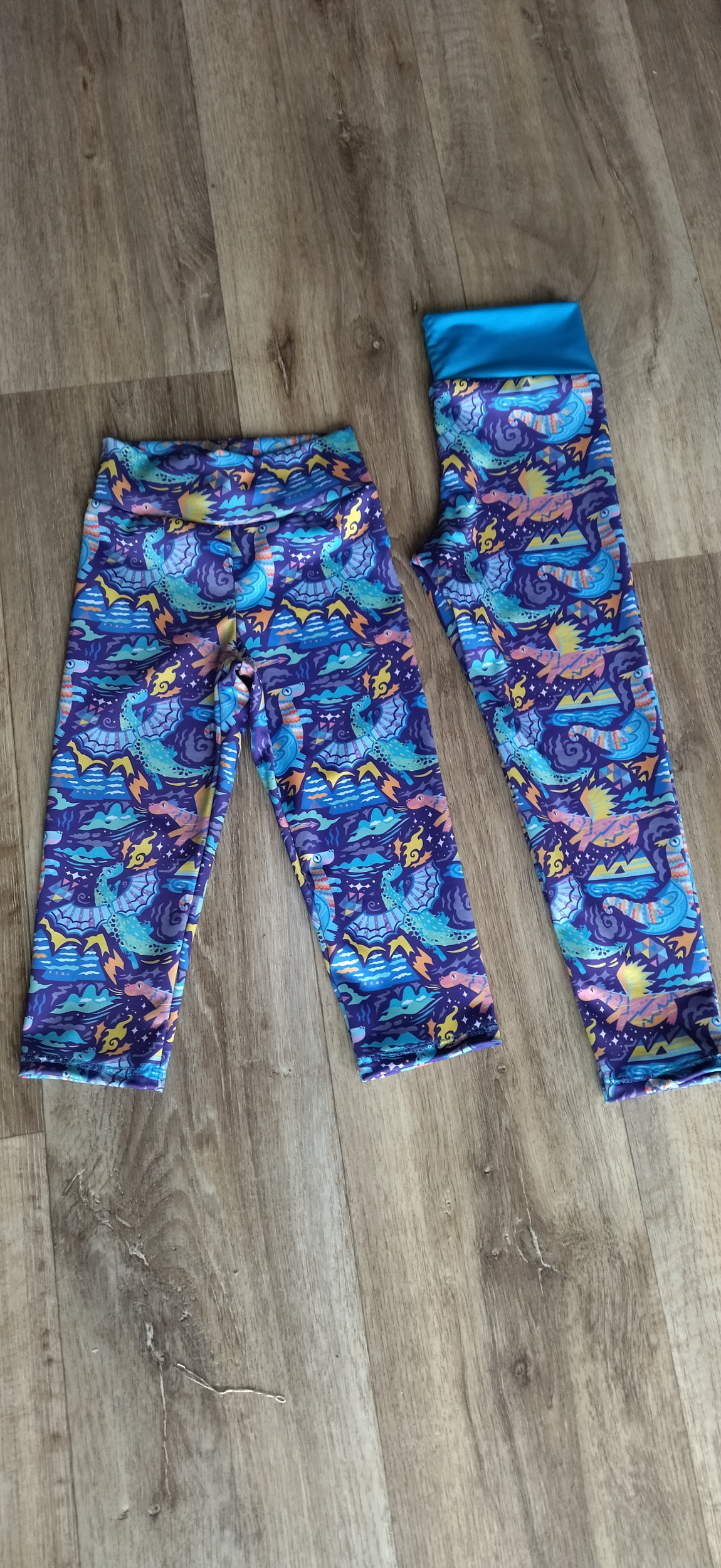 JK: "Živolegíny jsem si nakonfigurovala dle rozměrů. Dcera si vybrala látky ze syslírny. Střih jsem promítla projektorem na látku a společně jsme nastříhaly a nařezaly. Převlékly jsme nitě ve strojích a ušít už byla rychlovka. Střih sedí perfektně, dle návodu ho zvládne každý. Děkujeme " *