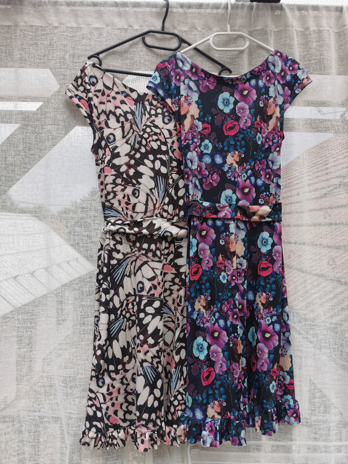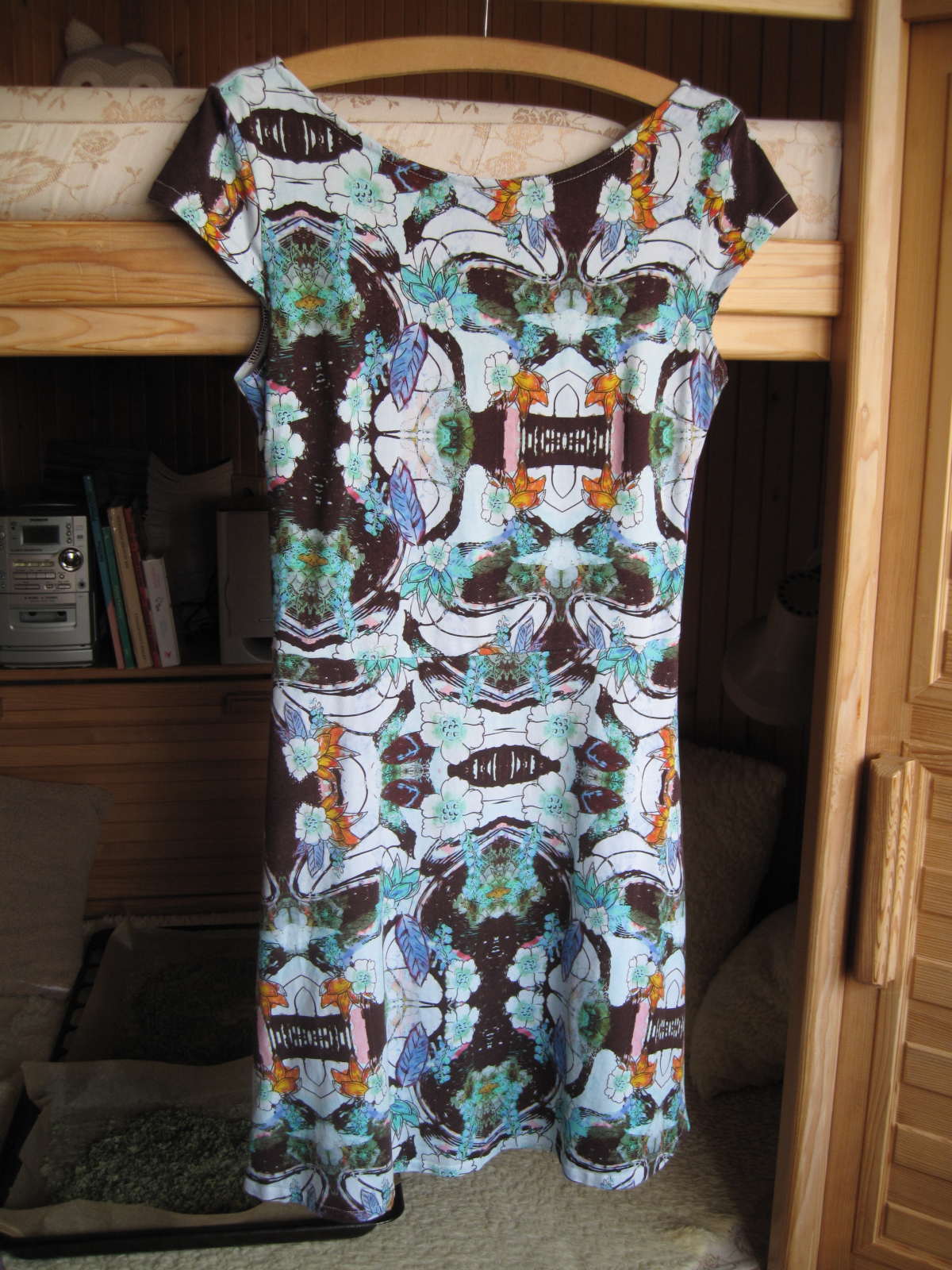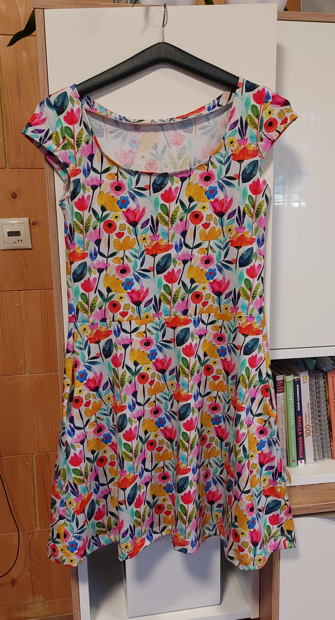 velikost: 38, materiál: bavlněný úplet (barevný fantaskní vzor), viskózový úplet (modré s květy); materiály z Unuodesign