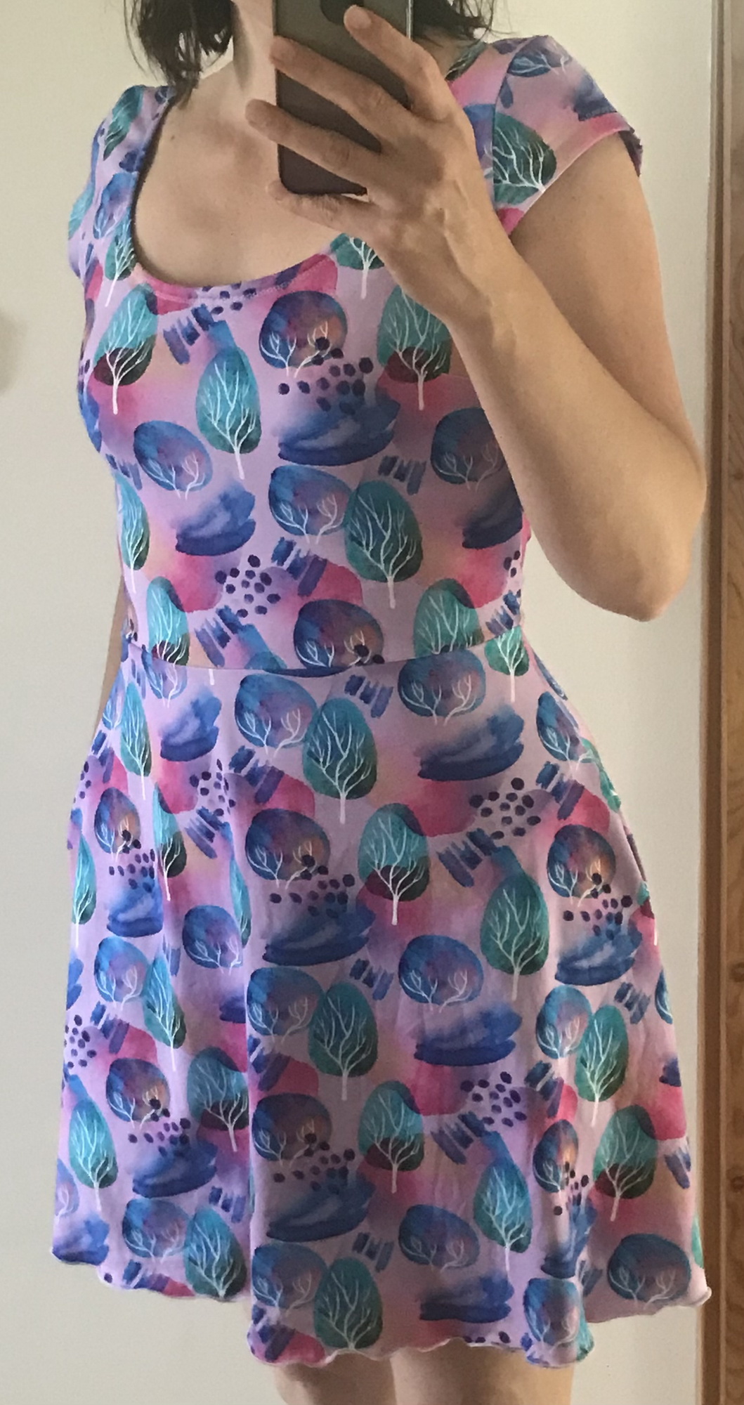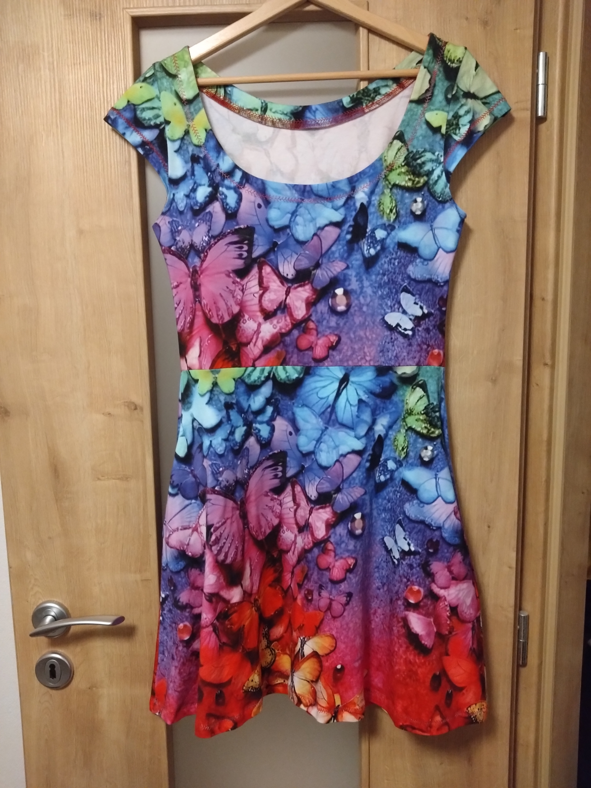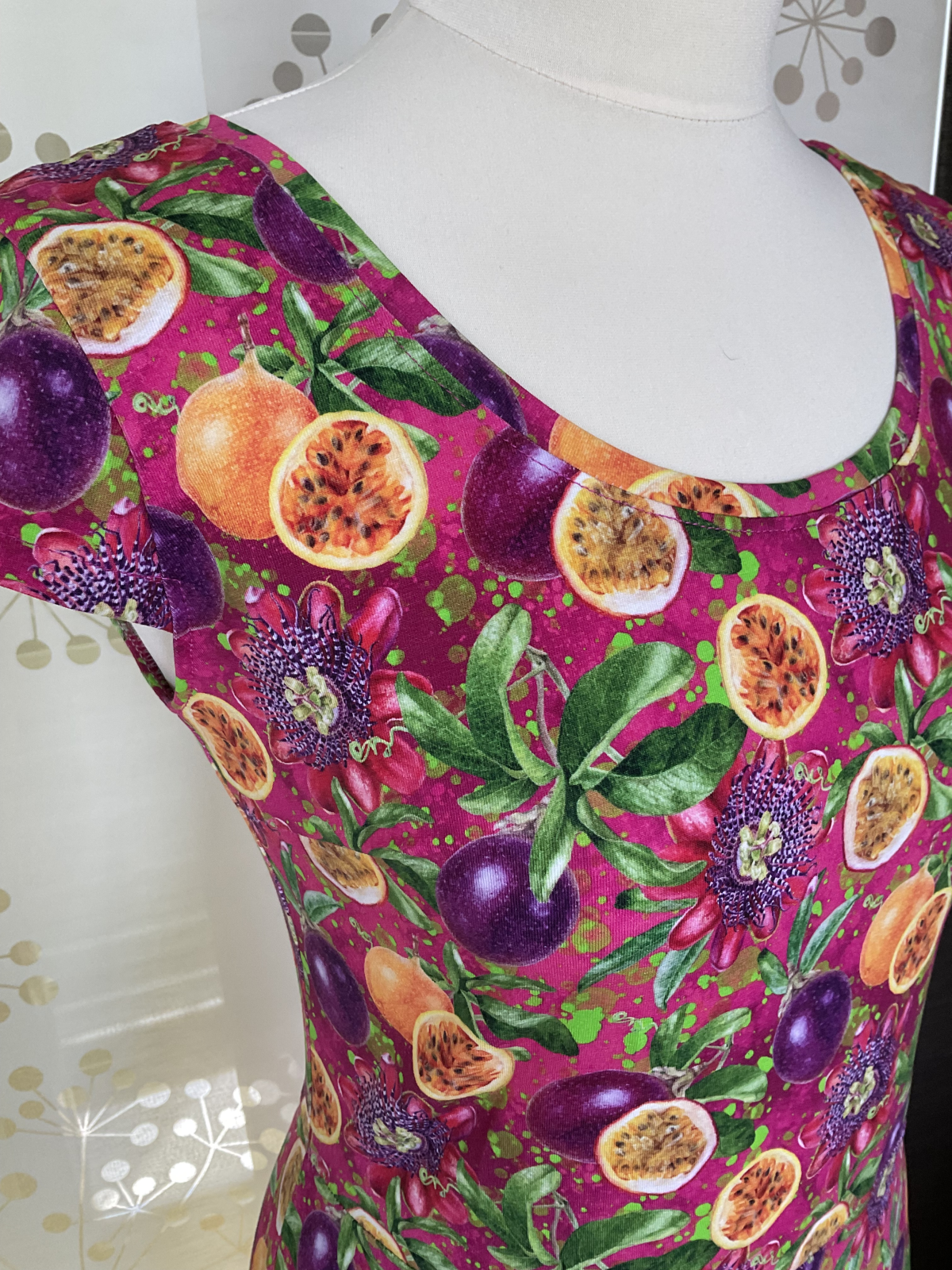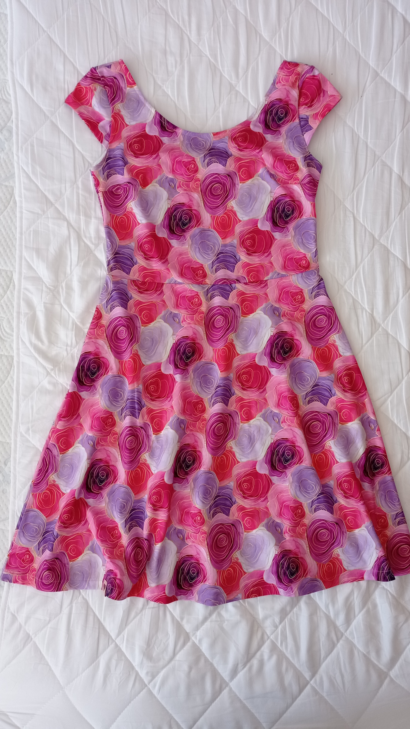 velikost: 38, materiál: bavlněný úplet (barevný fantaskní vzor), viskózový úplet (modré s květy); materiály z Unuodesign