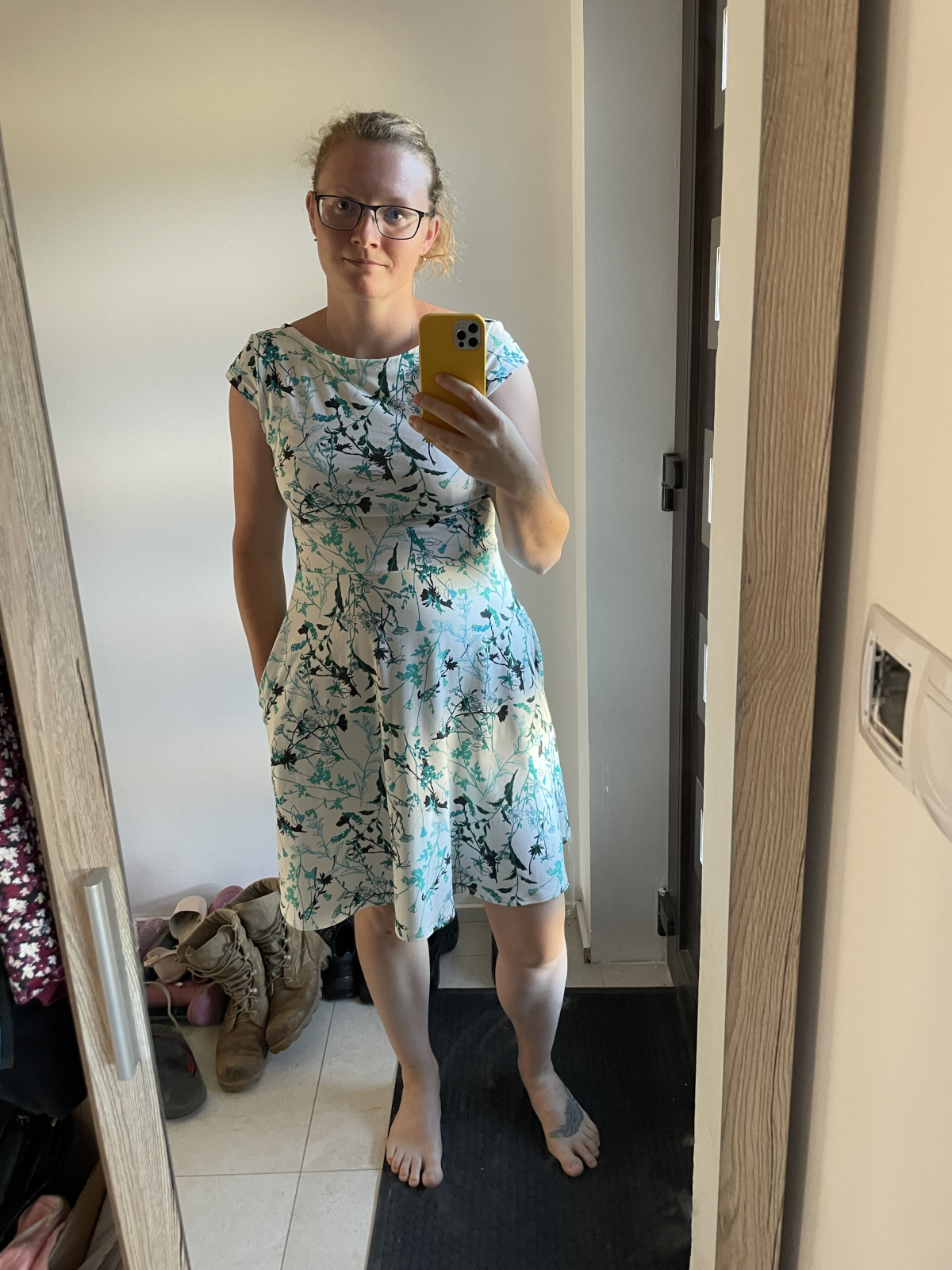 MN: "Ano, velká spokojenost. Už jsou to mé třetí Letníny a stále nemám dost. Tentokrát jsem (částečně z nedostatku jednoho materiálu) šla do kombinace. Šaty vyšly jako každodenní a mají nádech "sportovnosti" při nošení. Překvapivé, ale proč ne... Délku jsem prodloužila o 5 cm." *
