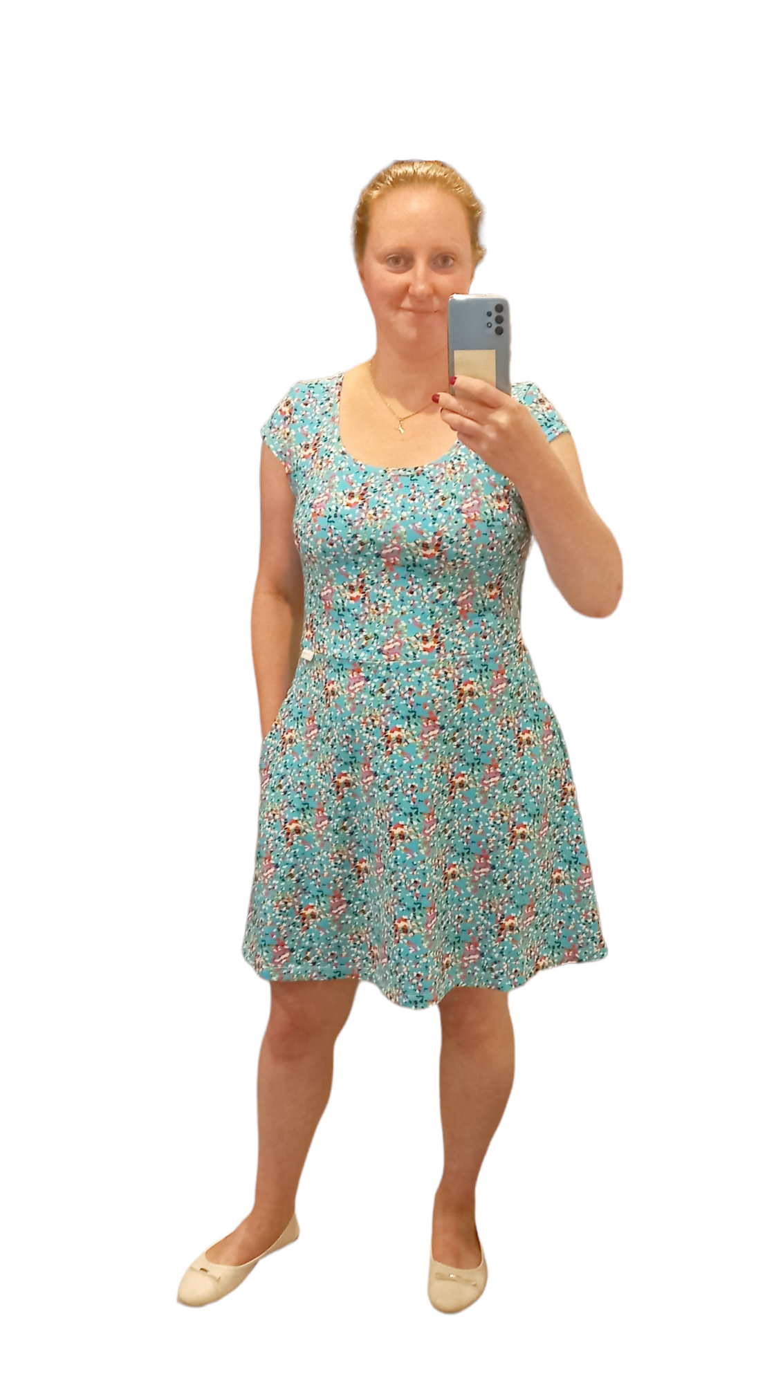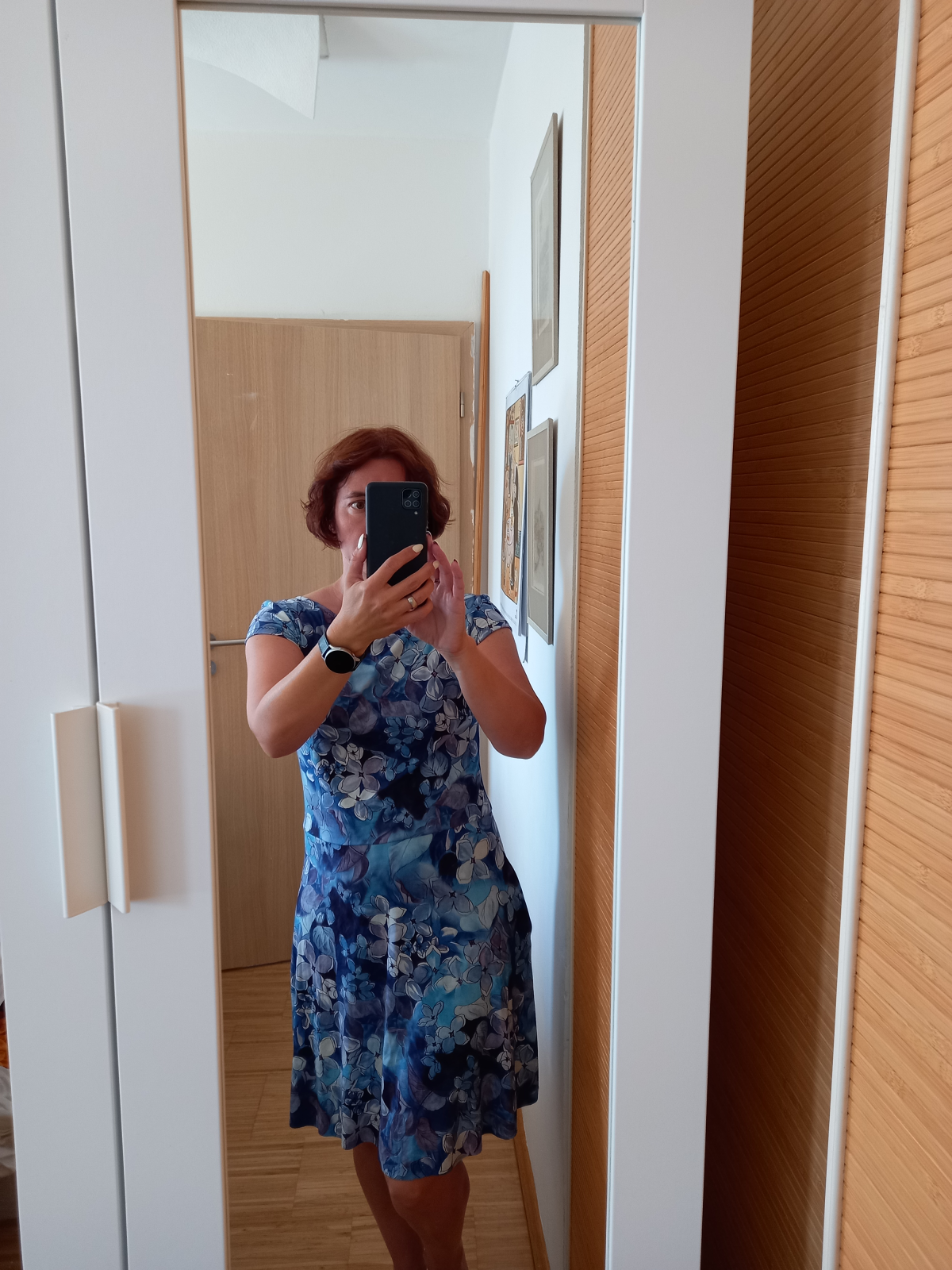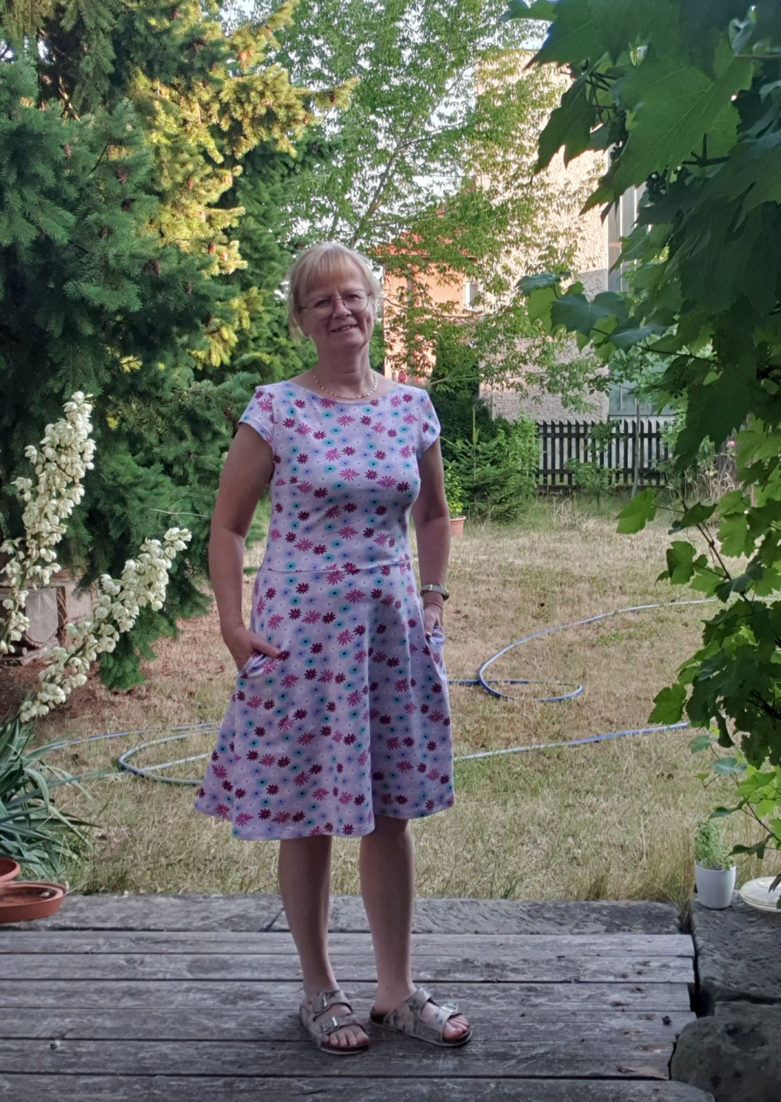 Dáša P.: "Šaty se šijou skvěle jen s kapsami jsem zápasila ač jsem šila dle návodu. Sukni jsem oproti návodu lehce rozšířila. Již jsou to šaty č.2.již mám látku na další... moc se mi líbí rukávy, jsou na léto uplně stvořené" *