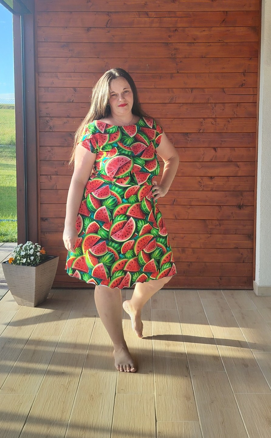 Hanka Macková: "Určitě doporučuju, šilo se krásně. Střih velikostně sedí, neměla jsem žádný problém. Šaty jsou neskutečně pohodlné a skvěle sedí!!! " *