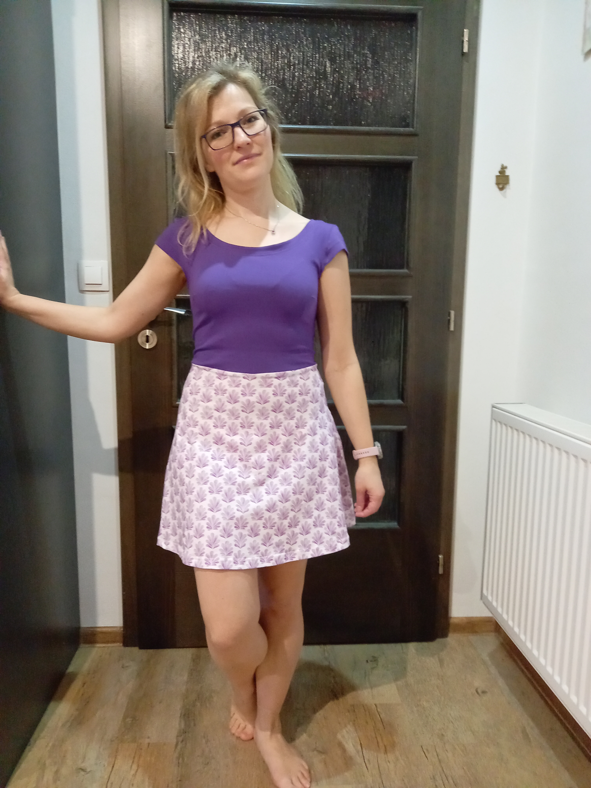 MB: "Šaty se šily velmi dobře díky videonávodu a preciznímu střihu. Oceňuji, že jsou již přidané přídavky a nemusím je kreslit sama. Úplet byl více pružný, než jsem čekala a tak mi přidělal práci navíc. Použila jsem tulipánové rukávky z Cesmín." *