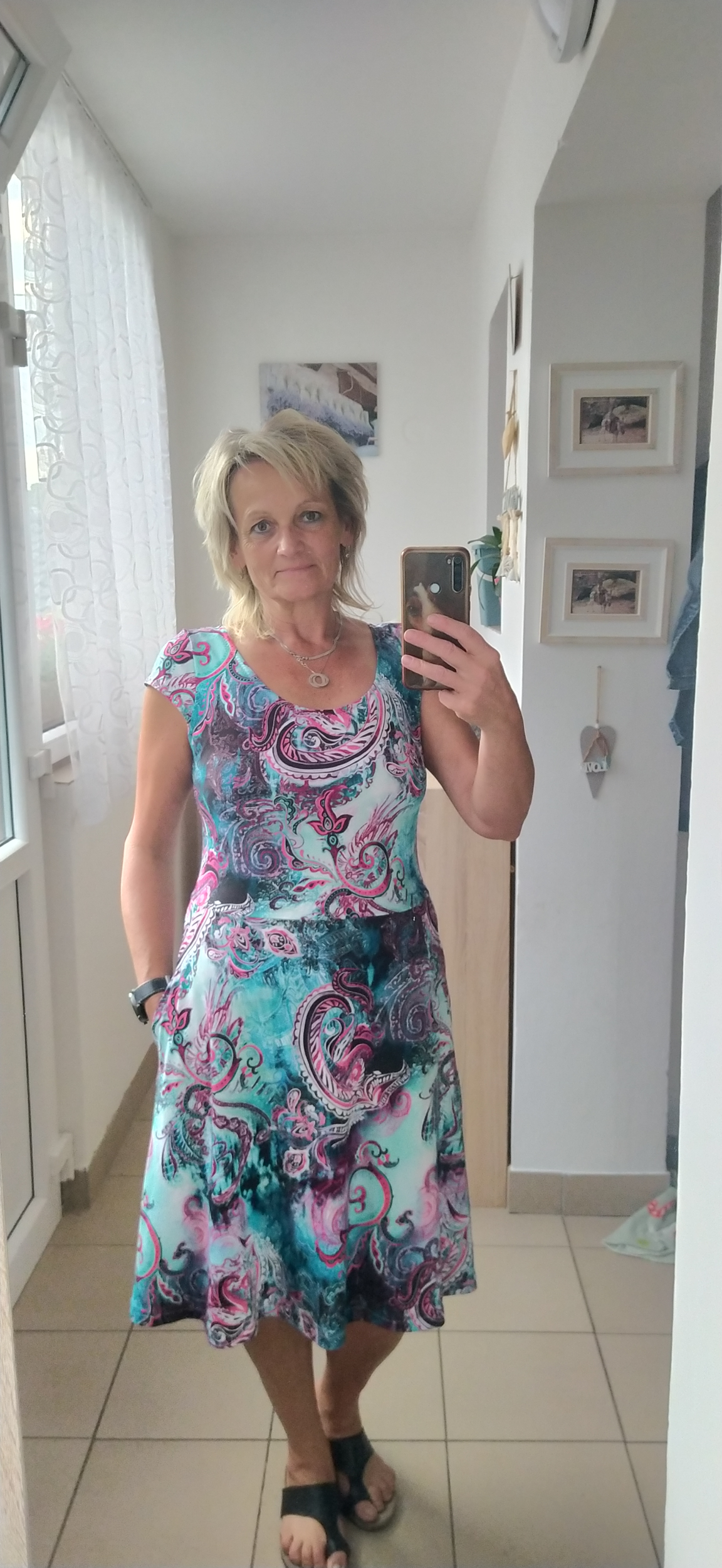 velikost: 40 a 34, materiál: Šilo se velmi lehcen neboť to již byly 5. a 6. Šaty. Jen vždy trochu bojuji s kapsami, aby se nevytahovaly