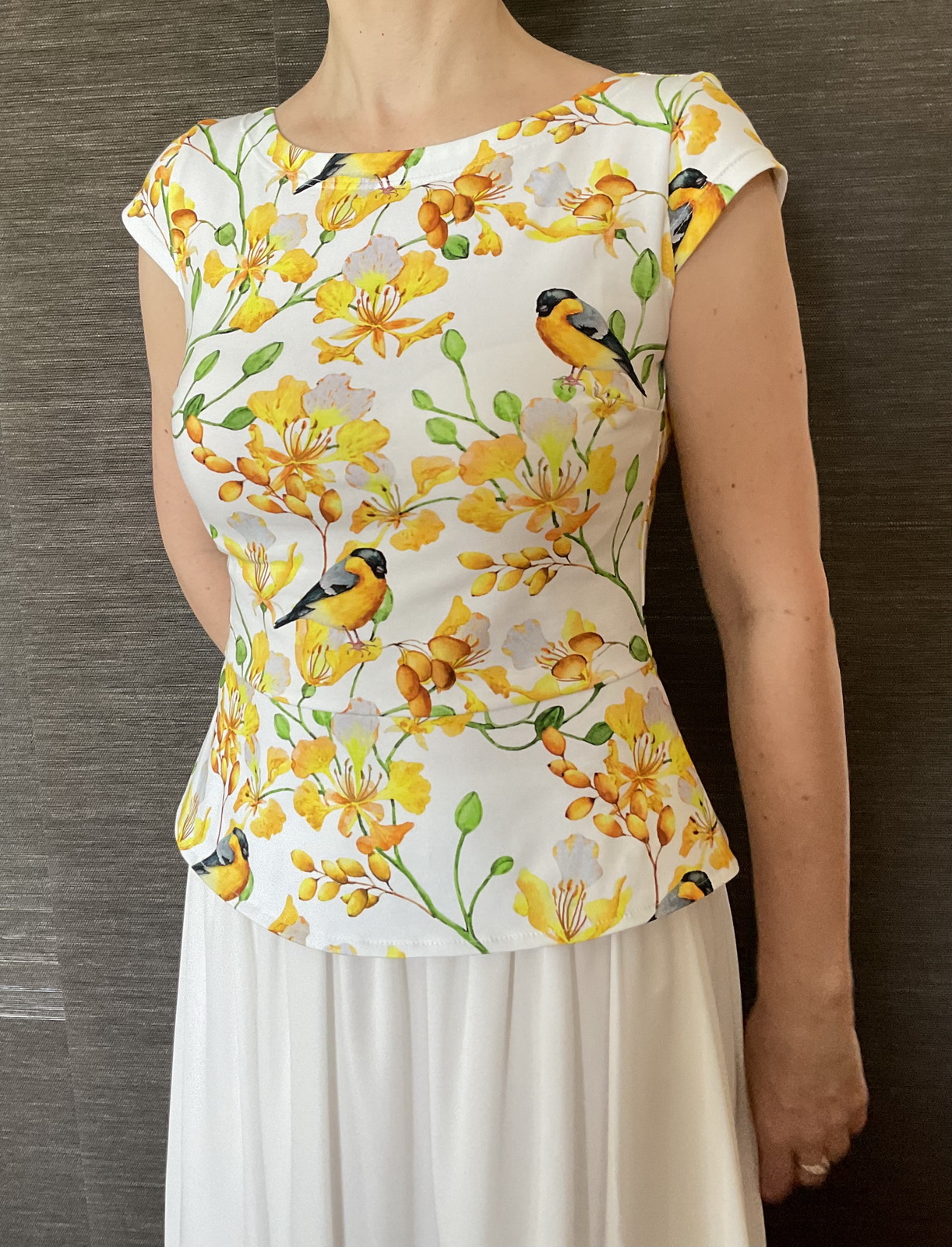 MF: "Opět vynikající střih, který se dá lehce upravit na skvěle padnoucí tričko, a to jak obyčejné, tak ozvláštněné právě kouskem sukénky... Moc děkuji autorce, díky ní má ze šití opravdu radost!" *