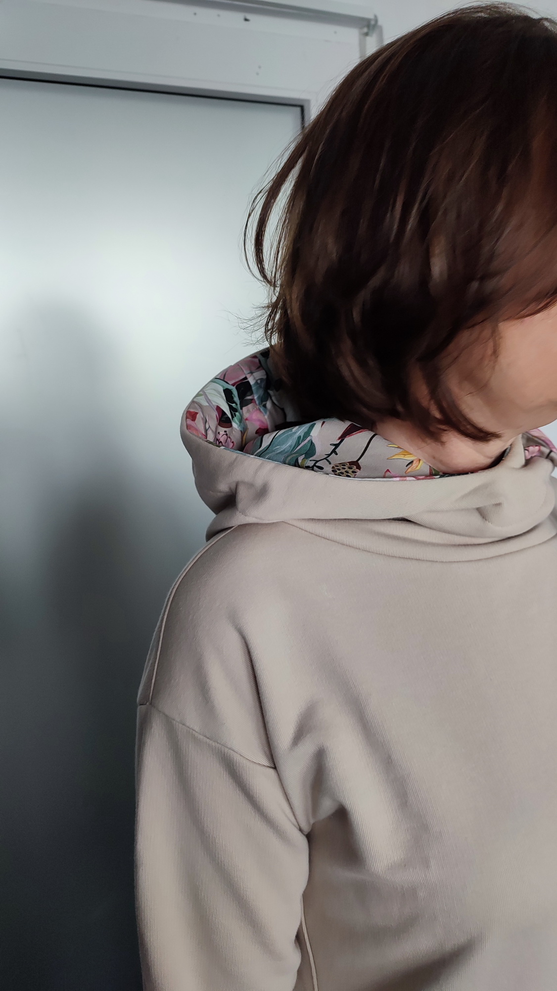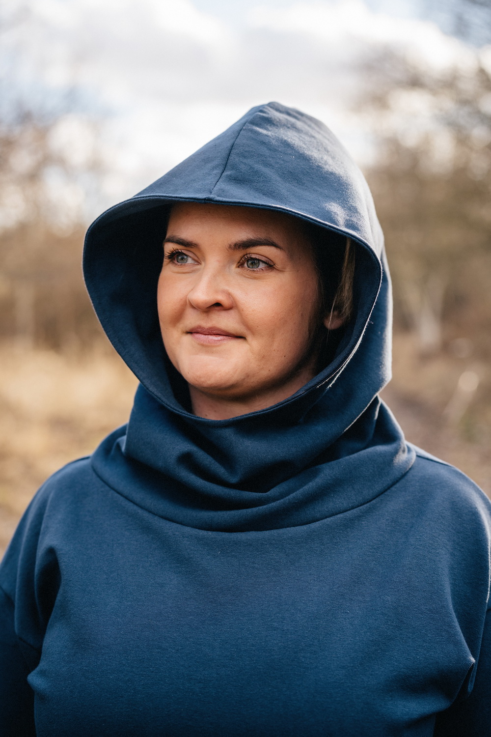 LH: "Střih boží. Zvolila jsem vel 44, dle hrudníku mi vycházelo 46, ale přišlo mi to velké. Nicméně i 44 mi je hodně volná, s modalem jdu příště do vel 42. Jinak je mikina velmi lichotivá a i ta kapuca je skvělá. Většinou mi kapuca vadí, tady jsem z ni nadšená. Díky:)" *