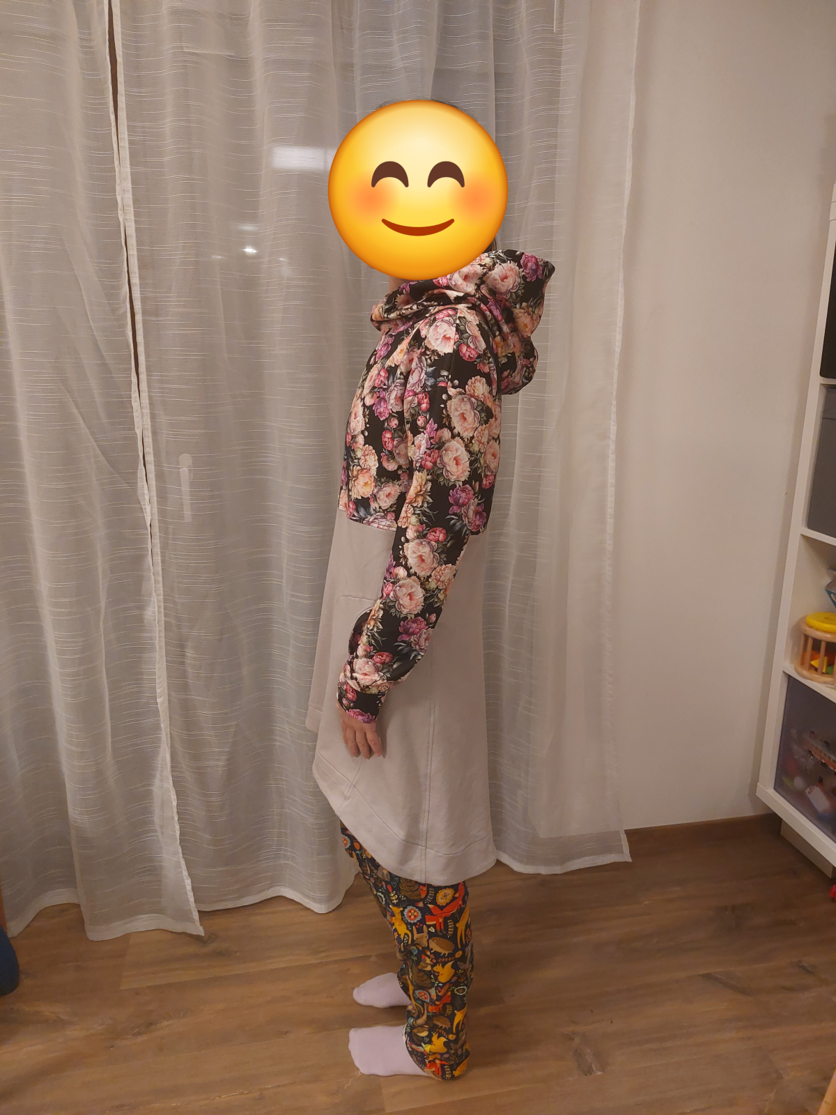 SK: "Šila se krásně je šitá ze zbytků od kamáradky takže v podpaží jsem musela sešít teplakovinu plus chtěla jsem kapuci ale to mi nevyšlo takže límec. Jinak návod parádní jsem velice spokojená." *