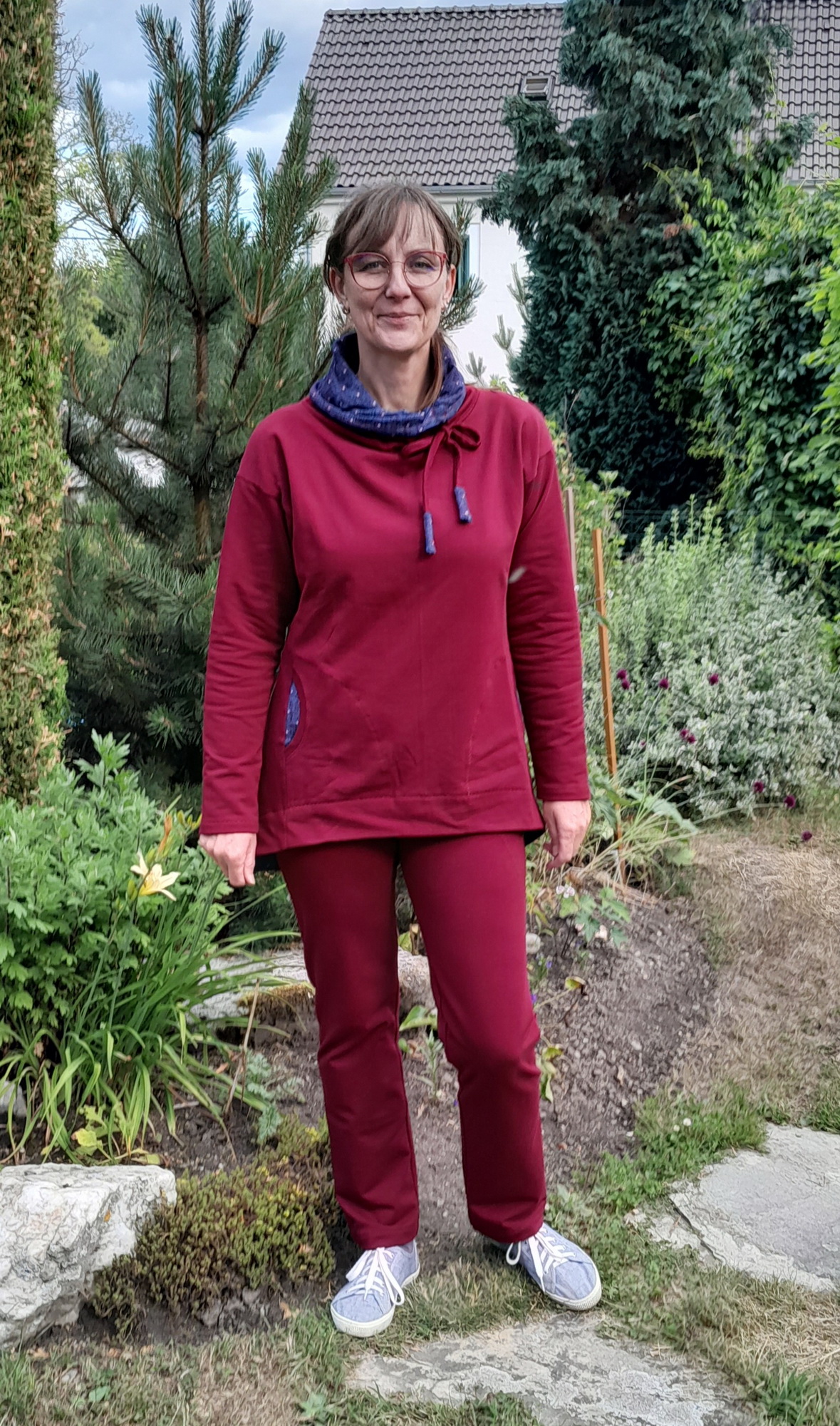 Veru: "Šilo se moc dobře, naučila jsem se nové techniky z videa, ale trochu mě zklamalo, že mikina je opravdu široká, i když jsem se v konfiguraci snažila o co nejužší verzi. Musela jsem si skoro ušitou mikinu zúžit ve švu na zádech, což nedopadlo zrovna ideálně 😉. Jinak jsem moc spokojená, je opravdu pohodlná." *