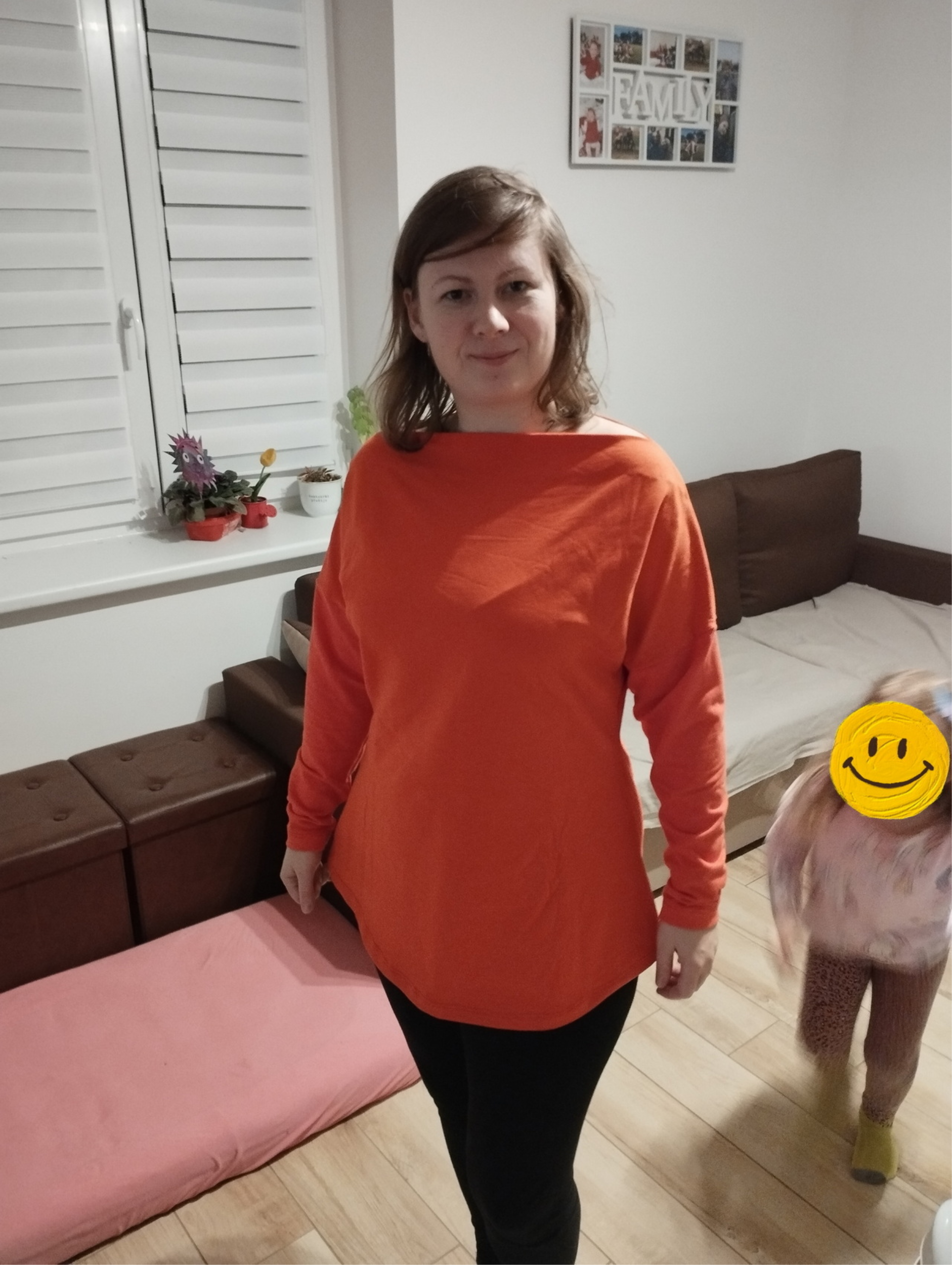 „Jelikoz jsem vysoka 177cm, ne vzdy mi vse sedi, strih jsem si tedy upravila na miru. Jedine, co jsem upravovala podle sebe, byl spodni lem mikiny, ktery jsem na bocich zakoncila rovne. Dle strihu mi kuriozne odstavala do stran, proto jsem srovnala do rovna. Sedi krasne. S videonavodem to slo jedna basen.“