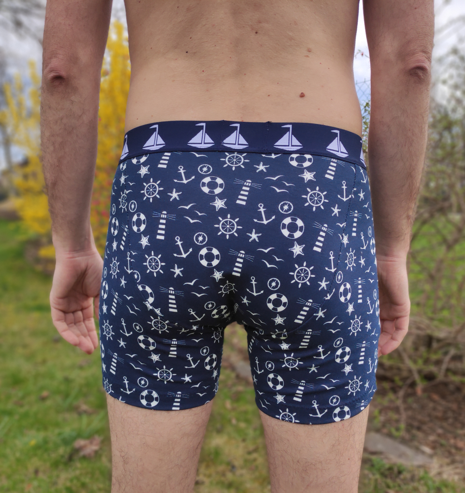 Trochu jsem se bála, co manžel řekne na ten zadní díl, dosud takový střih na svých boxerkách neměl, ale vůbec mu nevadí a po obléknutí prohlásil "Týjo, konečně něco, co je na noze upnutý a tady (v rozkroku) to má přitom místo" 🥳“