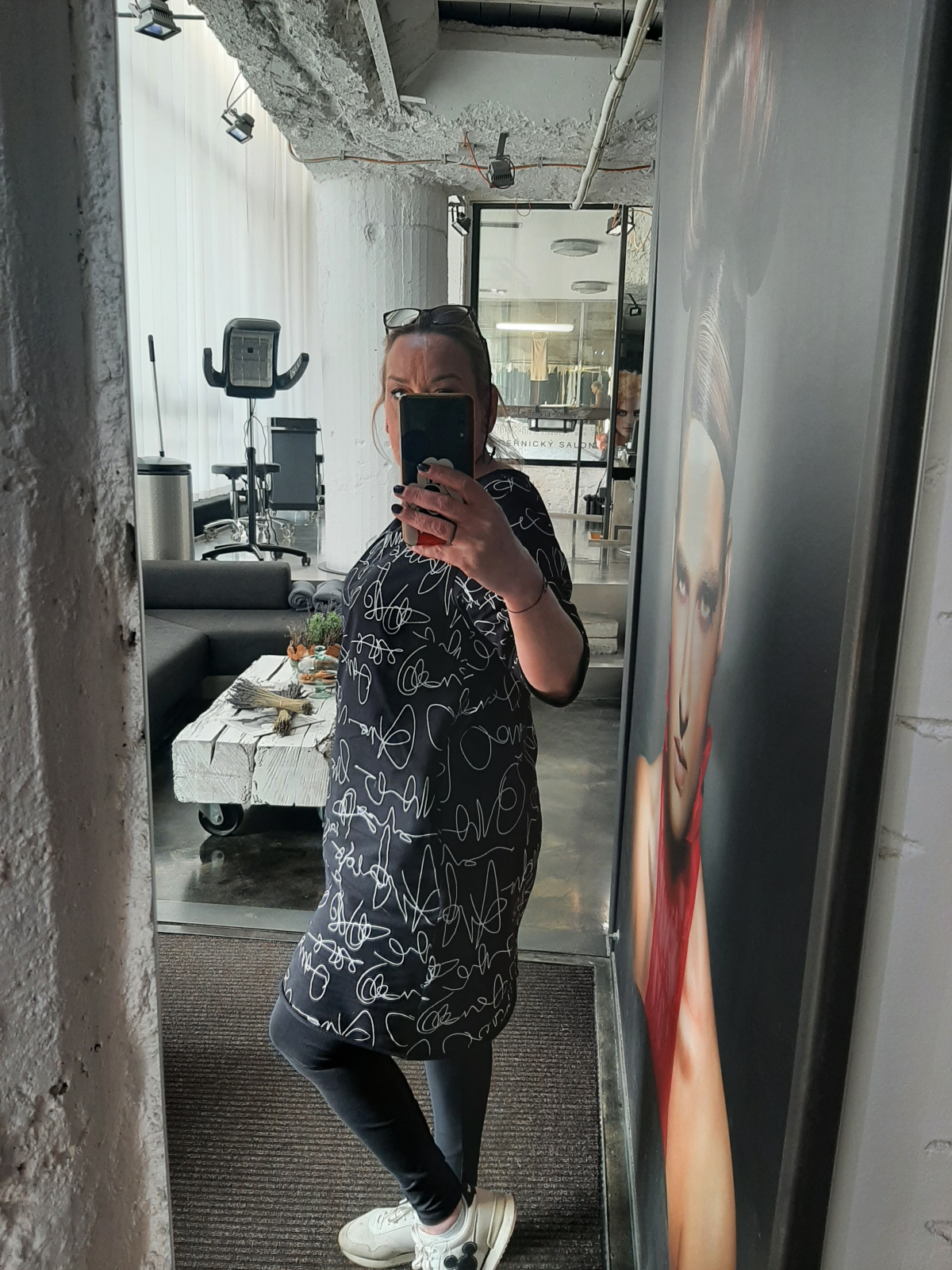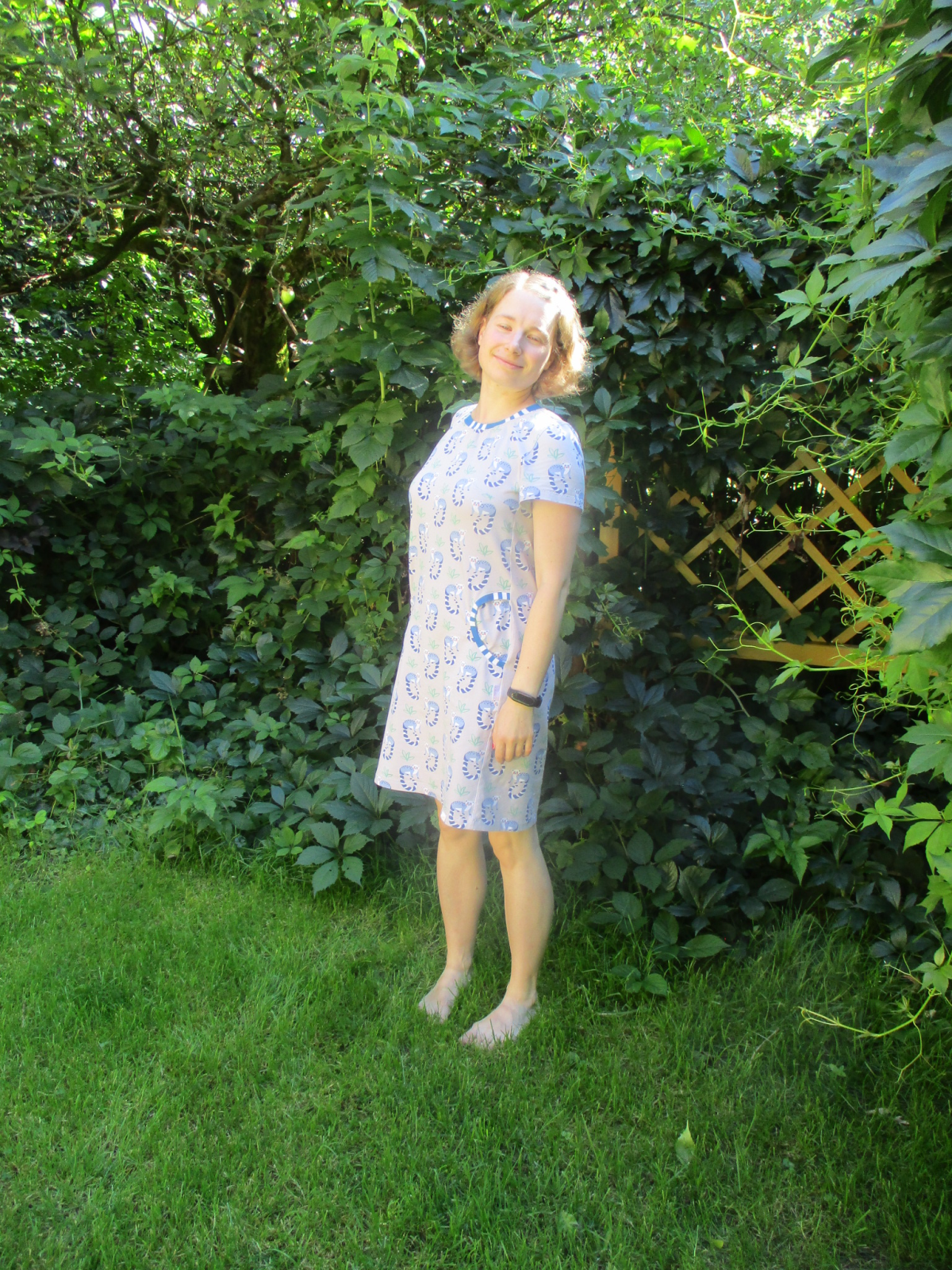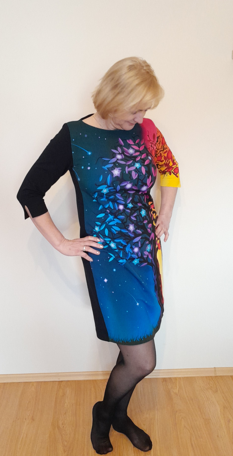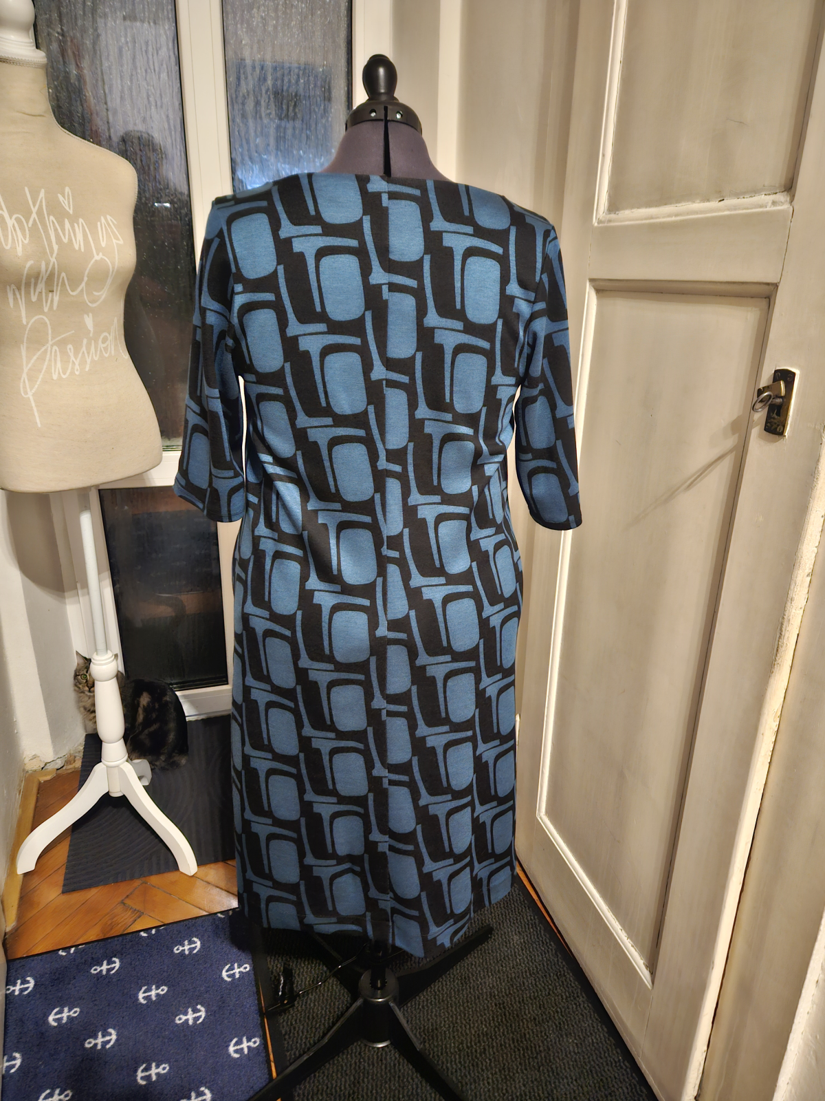 Jsou to šaty, které díky své délce i střihu jdou nosit jak s legíny tak bez nich. Délka rukávu je praktická a zakončená úžasnou manžetou, která vás bude při šití bavit svou jednoduchostí a při nošení vám zajistí veškerý komfort ať už ji ohrnete nebo necháte směrem dolů jako rozparek. Pouzdrové šaty mají lehce projmutý pas, v předním díle jsou všité důmyslné kapsy, které jsme vymysleli tak, že partii bříška nepřidávají, a váčky se nekrčí. Jejich snadné šití díky videonávodu zvládne každá hobby švadlenka.