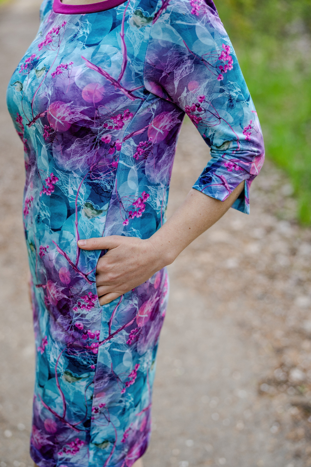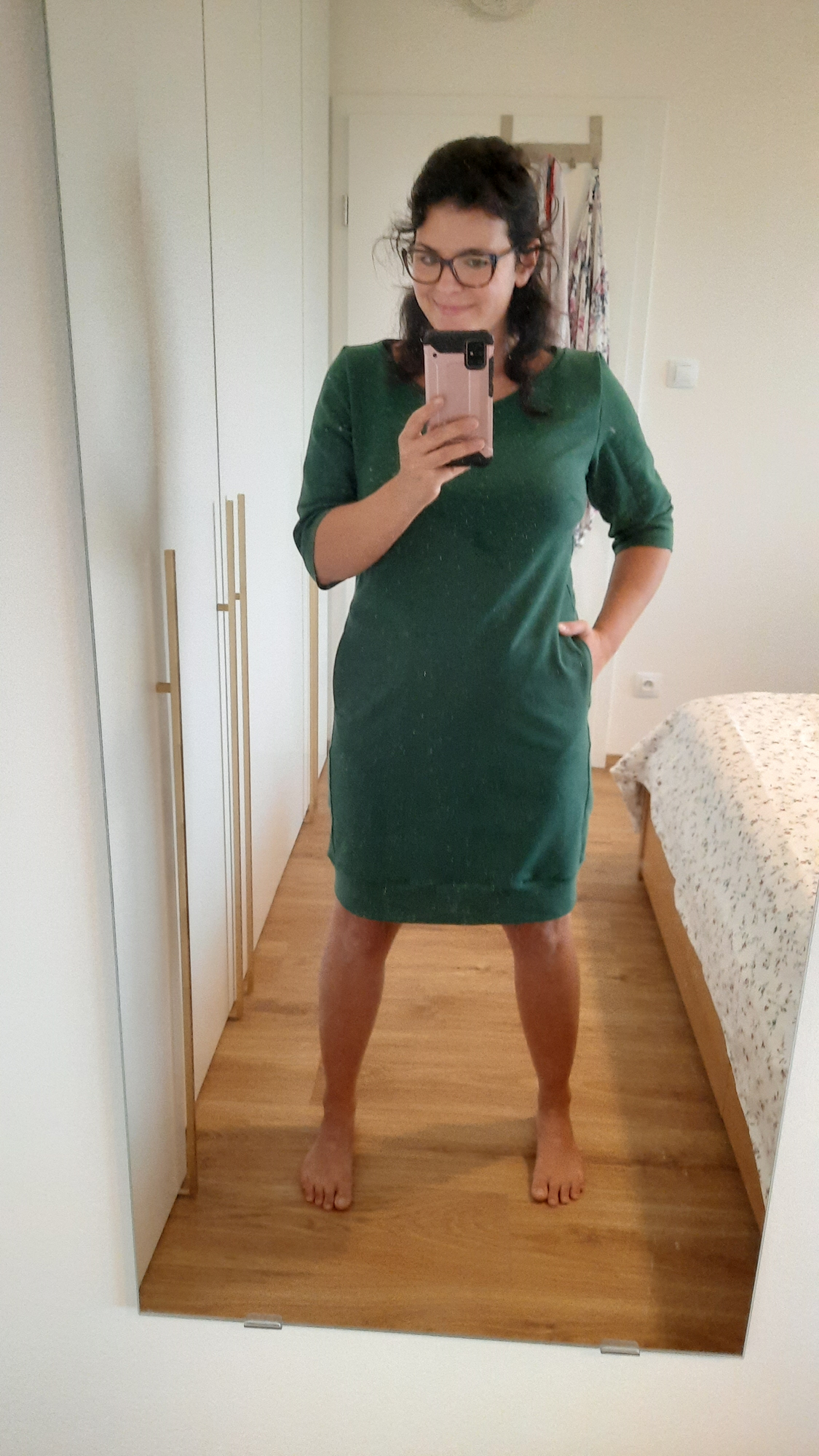Lenka Visi: "Velmi pěkný střih na jednoduché šaty. Vynechala jsem kapsy, tato kapsa přes bříško mi nevyhovovala. Podle video návodu se šily samy😉" *