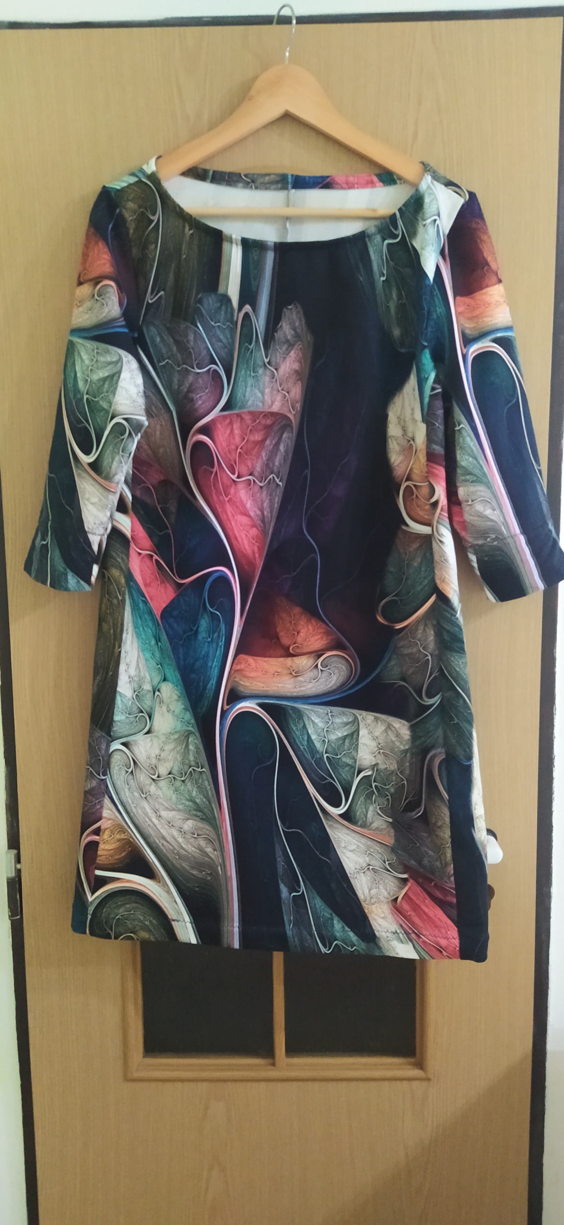 DP: "Šila jsem již 4.šaty, střih mě velmi vyhovuje a tak jsem nyní ušila letní verzi. Trošku ta kapsa se musí po oblečení naštelovat a bez ní by to prostě nešlo." *