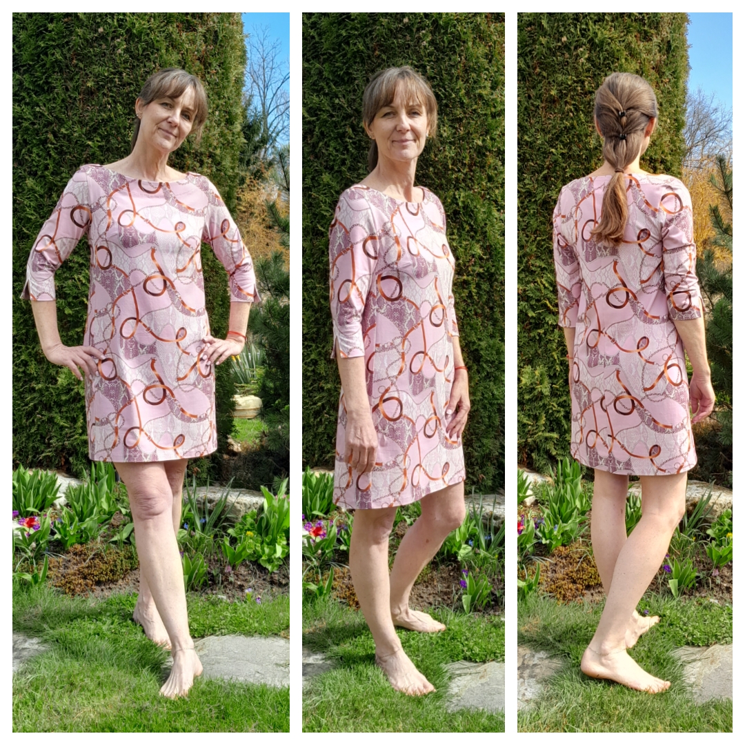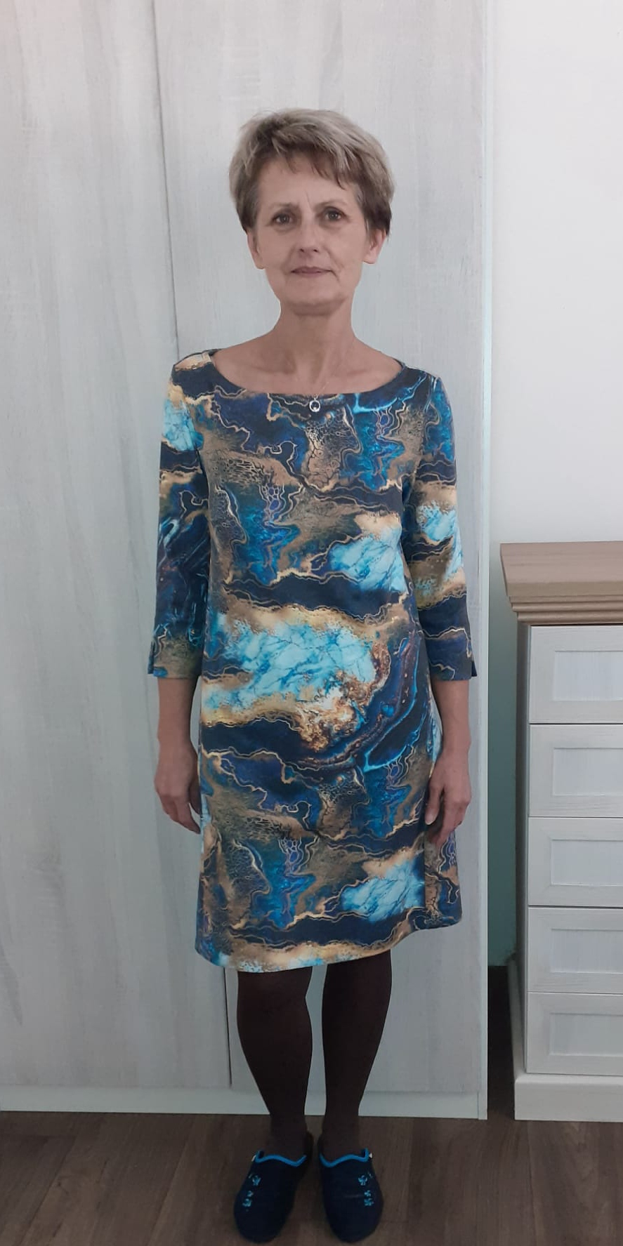 LH: "Moc děkuji za úžasný střih na míru i skvělé video. Šilo se krásně, návod je velmi dobře zpracován. Šaty mi sedí, tak jak se mi líbí, těším se, že budu šít další, ale zkusím teplakovinu" *
