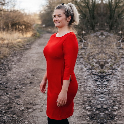 Hana K.: "Šaty se mi jako úplnému začátečníkovi šily moc dobře 🙂. Díky konfiguraci na míru výborně sedí a sestra je velmi spokojená 🙂. Jen jsem na přání vynechala kapsy." *