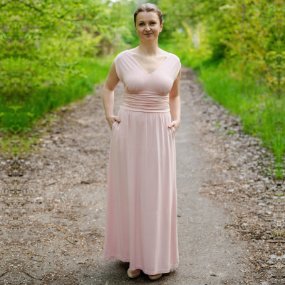 Šaty jsme jako vždy pečlivě vyzkoušely na modelkách ve velkosti 38 a 44/46. Vše je odzkoušené a díky videonávodu a možnosti nastavení na míru jsou šaty dostupné i pro mírně pokročilé švadlenky.