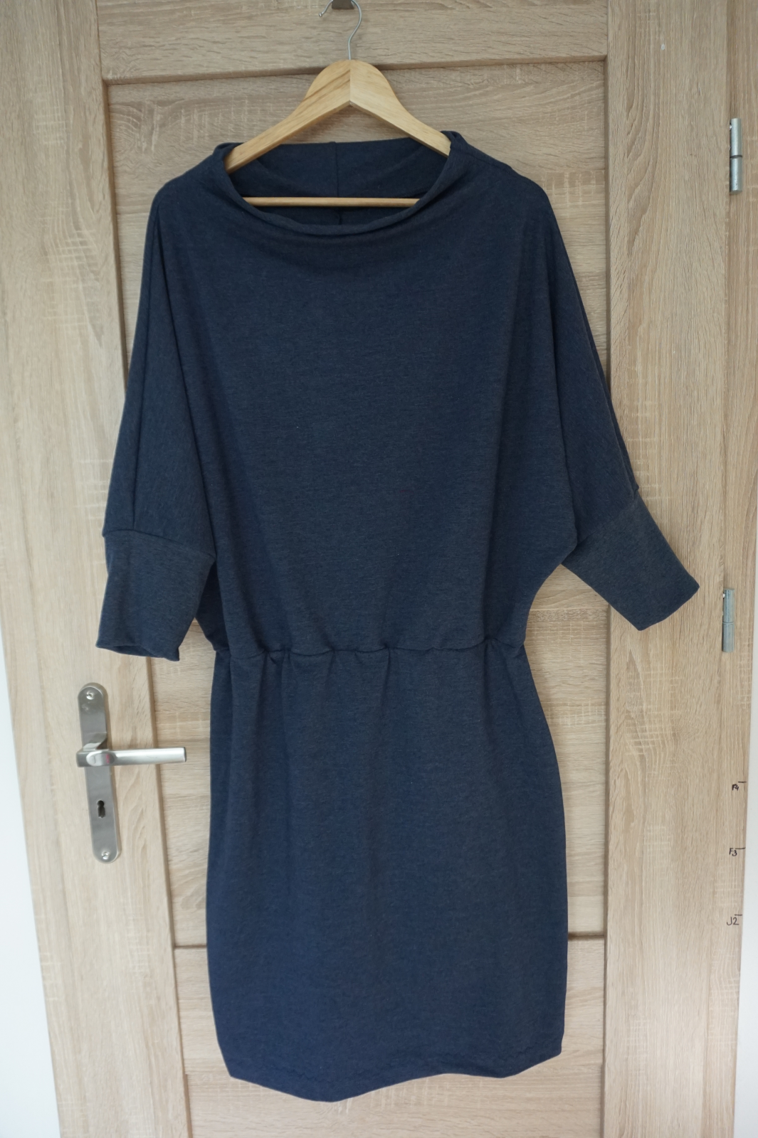 „Střih je bezvadný, na ušití rychlovka, šaty jsou slušivé. :) Zvolila jsem splývavější materiál, takže je vršek volnější, příště raději teplákovinu. I přesto šaty velmi ráda nosím.“