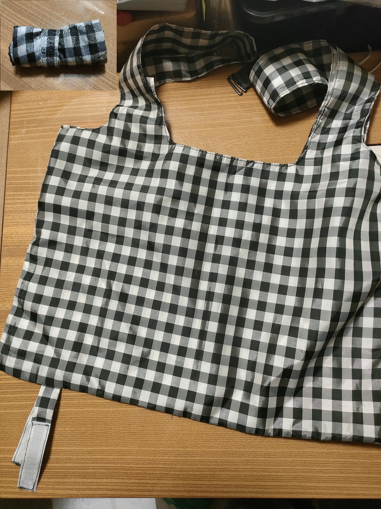 „Materiál je to velmi příjemný, taška z něj vypadá luxusně. Není jako každá skládací nákupka. Jen je výsledek trochu větší a proužky pro sepnutí poskládané tašky bylo nutné nastavit.“