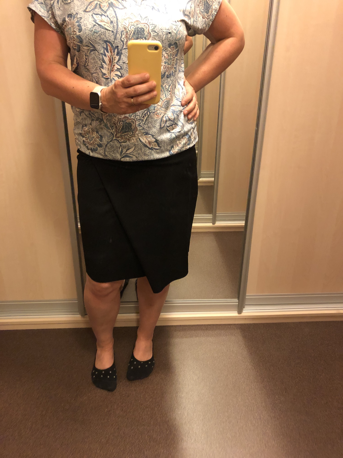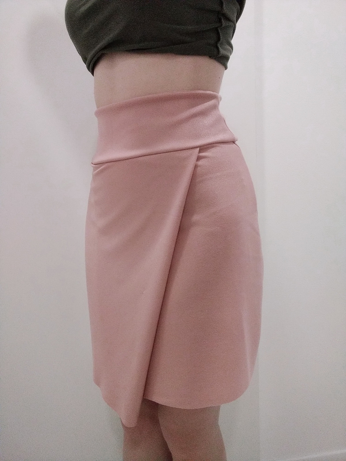 „Velká pochvala autorce Živých střihů, jak za střih, tak za video, šilo se parádně. Moje postava, v pase velikost 34, boky velikost 38, šila jsem tedy velikost 36, abych střih vyzkoušela. Proto mi sukně v pase odstává, ale pro příště vím, že nahoře uberu v horní polovině pásku, a dole krapet přidám... na délku jsem přidala 4 cm-z toho dva na zahnutí. Na fotce ještě nezapravená délka. Kolegyně v práci si sukni dnes adoptovala, sedí jí naprosto úžasně.“
