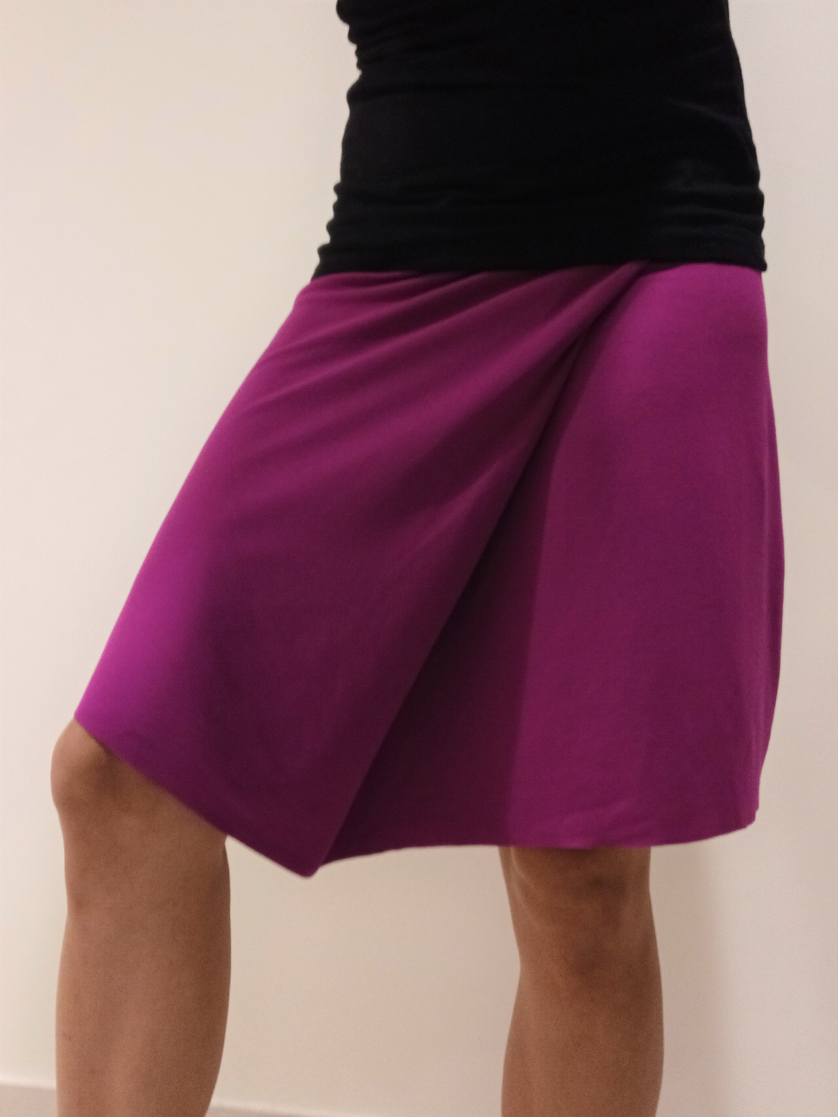 „Střih je skvělý a šilo se mi podle něj krásně (děkuji za video!). Žádné úpravy nebyly třeba a úplet Punto di Roma byla skvělá volba - je pružný a zároveň tak akorát pevný v pase a vypadá dobře i nezačištěný. Sukně je podle mě nadčasová a nevšední, určitě si ušiju ještě nějakou barevnou :).“