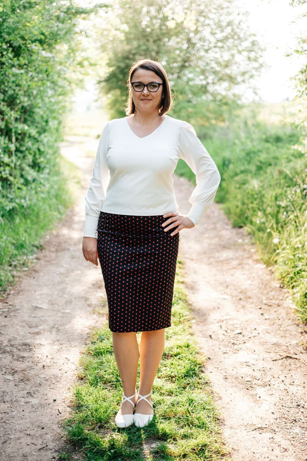„Poprvé jsem vyzkoušela konfiguraci střihu a protože jsem šoupátkama posouvala hodně, šila jsem zkušební verzi raději z nejlevnějšího úpletu, což nebyla zrovna šťastná volba. Ale střih sedí skvěle, video návod je naprosto perfektní! Konturování střihu jsem se bála naprosto zbytečně. Rozhodně u jedné nezůstanu.“